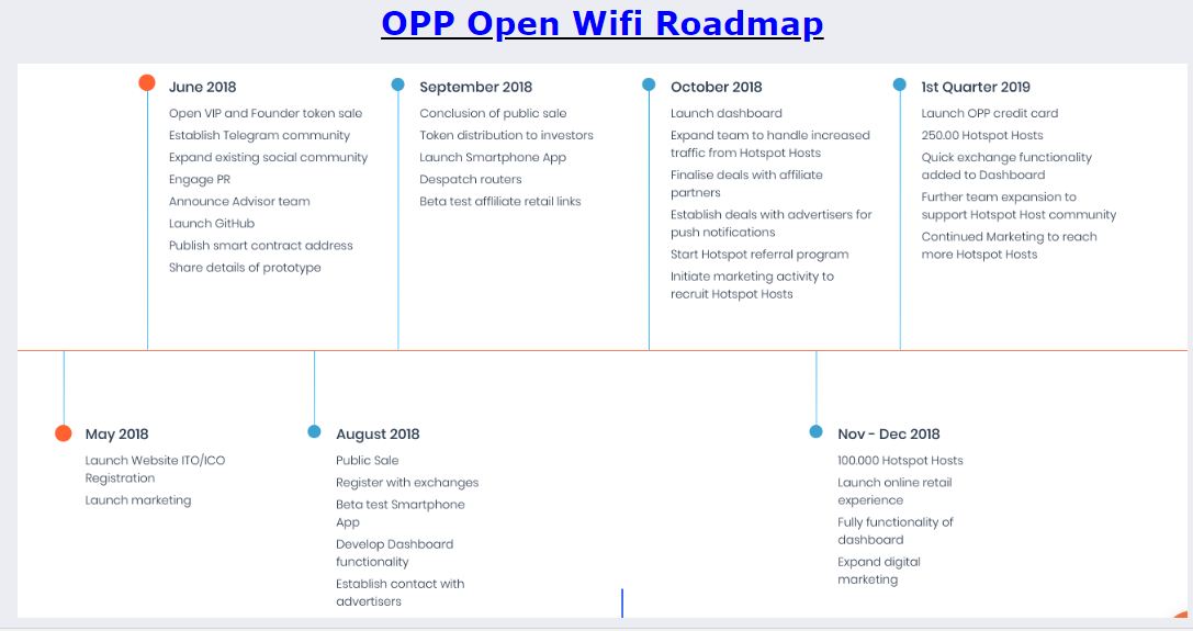 ICO / ITO is a new way for businesses to raise funds. The goal is to collect $ 40 Million from sales of tokens and ITOs (initial tokens). This fund will be used to buy hardware, to develop technology, and to support its stakeholders, to finance daily operations, marketing and staffing so that we can build a network of 1 million WiFi Hotspots hosted within 12 months after live broadcast and 25 million in 4 years, immediately join. When selling tokens, there will be 142 million tokens for Founders and Investors are available with discounts ranging from 50% to 10% depending on how the initial token purchase is made. the process of selling an OPP token will include a bonus structure that provides incentives to your initial participants, starting with pre-sale investors. below is the bonus schedule: