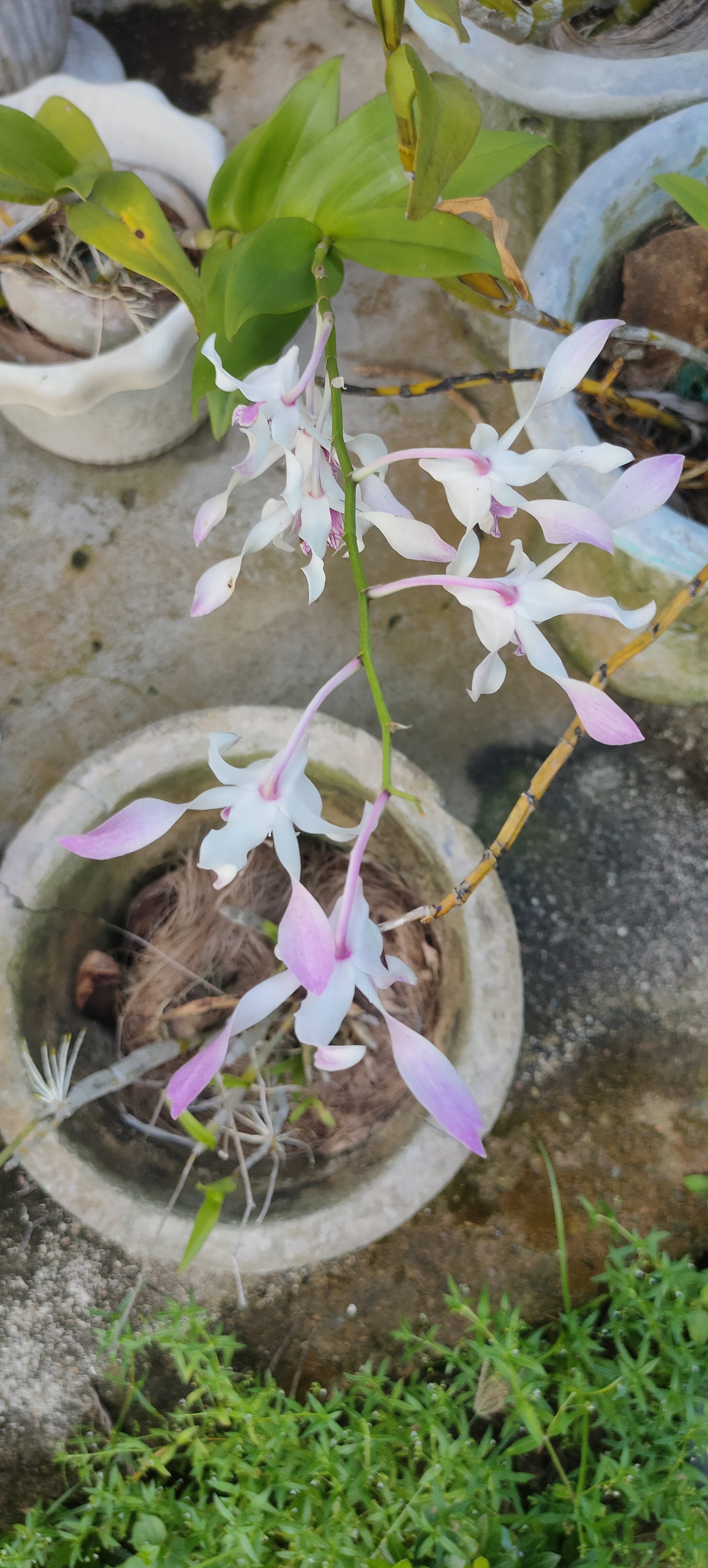 The first orchid is called the Anosmum orchid. Its natural habitat is in forests, where it grows by attaching itself to other plants. This orchid can be found in almost all forest areas in Indonesia. The characteristics of the Anosmum orchid include a slender stem with a diameter of 3 cm. The stem can grow up to 3 meters in length. The flowers of the Anosmum orchid have a fragrant aroma and bloom quite abundantly.