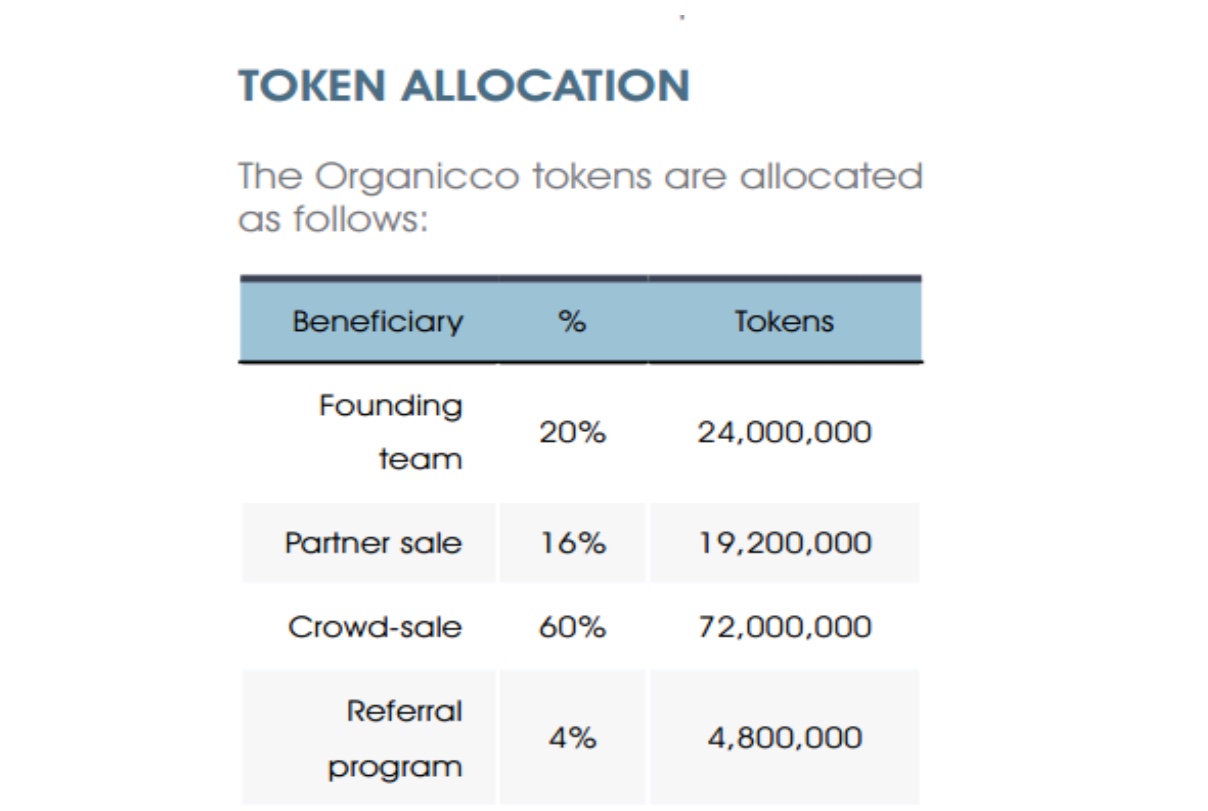 Likewise,the distributions of the organicco tokens are allocated to participants based on varying degree and this is usually expressed in percentages too.
