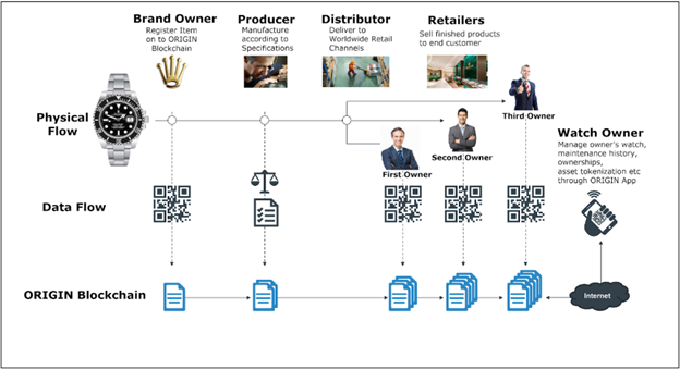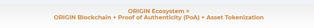 ORIGIN Ecosystem consists with origin blockchain technology, Proof of Authenticity (PoA) and Asset Tokenization to provide end-to-end brand owner supply chain management to end-customer asset management.