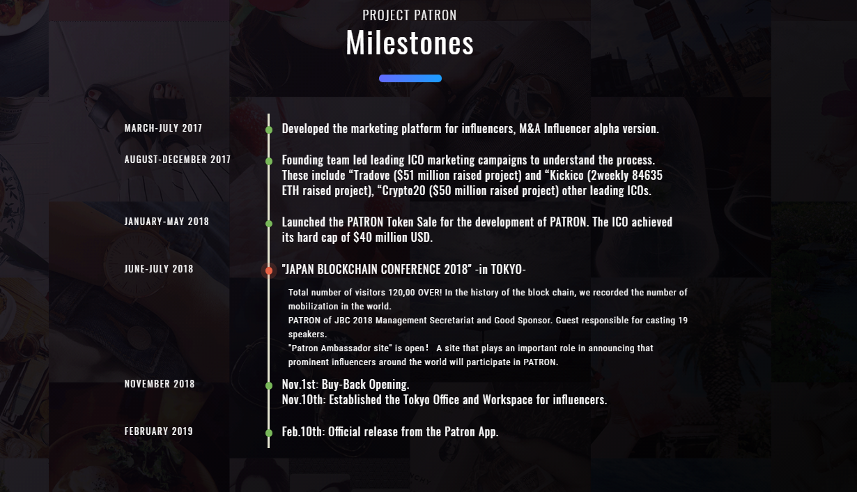 Behind PATRON there is a team that works hard to make this project possible, and with its founder who has several clear goals, besides there is something very important about what he thinks about PATRON and is that in Asia many companies are limited in their functions, reaching only people from his country or the Asian continent but do not seek to expand around the world and reach as many countries and continents as possible, the idea is to create a platform recognized worldwide as other American brands, and he sees the opportunity to be recognized worldwide with its PATRON platform, and also to obtain the recognition of the creator of Facebook.