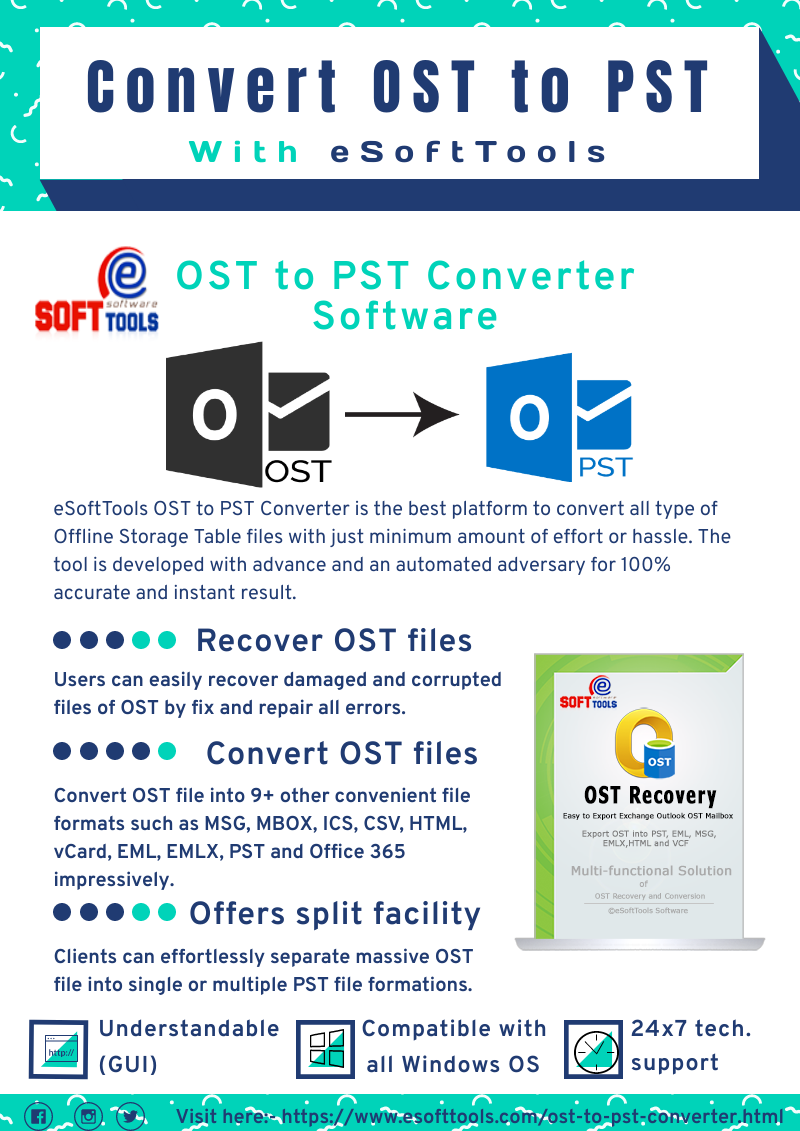 Every MS Outlook users can simply download this wonderful OST to PST Converter Software which is provided by the brand eSoftTools that easily works for making the recovery of lost data from damaged, corrupted and inaccessible OST File and migrate all OST file data like- emails, contacts, calendars, task, notes, inbox items, journals and appointments into PST Outlook file. This OST to PST Software allows to fix all OST File issues that are obtained because of System failure, virus attacks, system failure, and so on and support to convert OST File to PST, EML, MSG, HTML, EMLX, vCard, and MBOX format. It supports all MS Outlook file versions up to 2016 and doesn’t require MS Outlook application to perform the conversion.