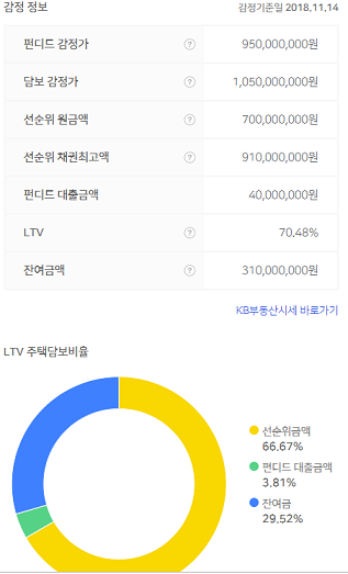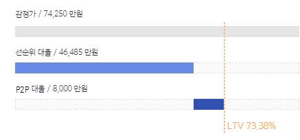 LTV 설명으로 돌아와서 아래 그림에서 담보 감정가 대비 73.38%만 빌려주었다면 LTV가 73.38%이 됩니다.