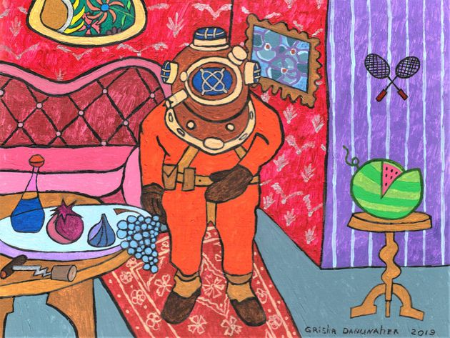 My painting artgrisha-danunaher (68)in #paint • 6 years ago The diver comes on a visit. Acryl 40х30 #drawing #artzone #acril