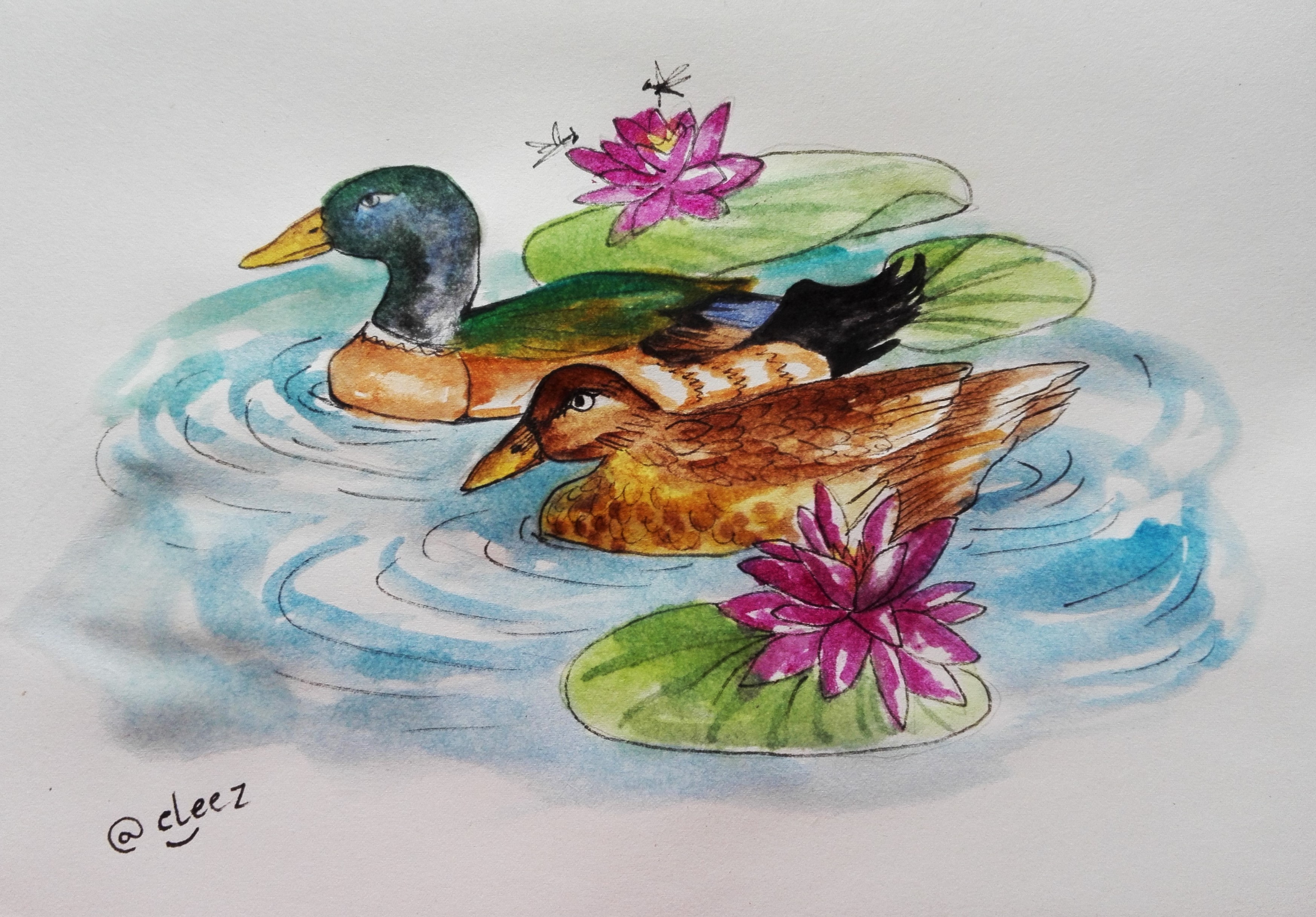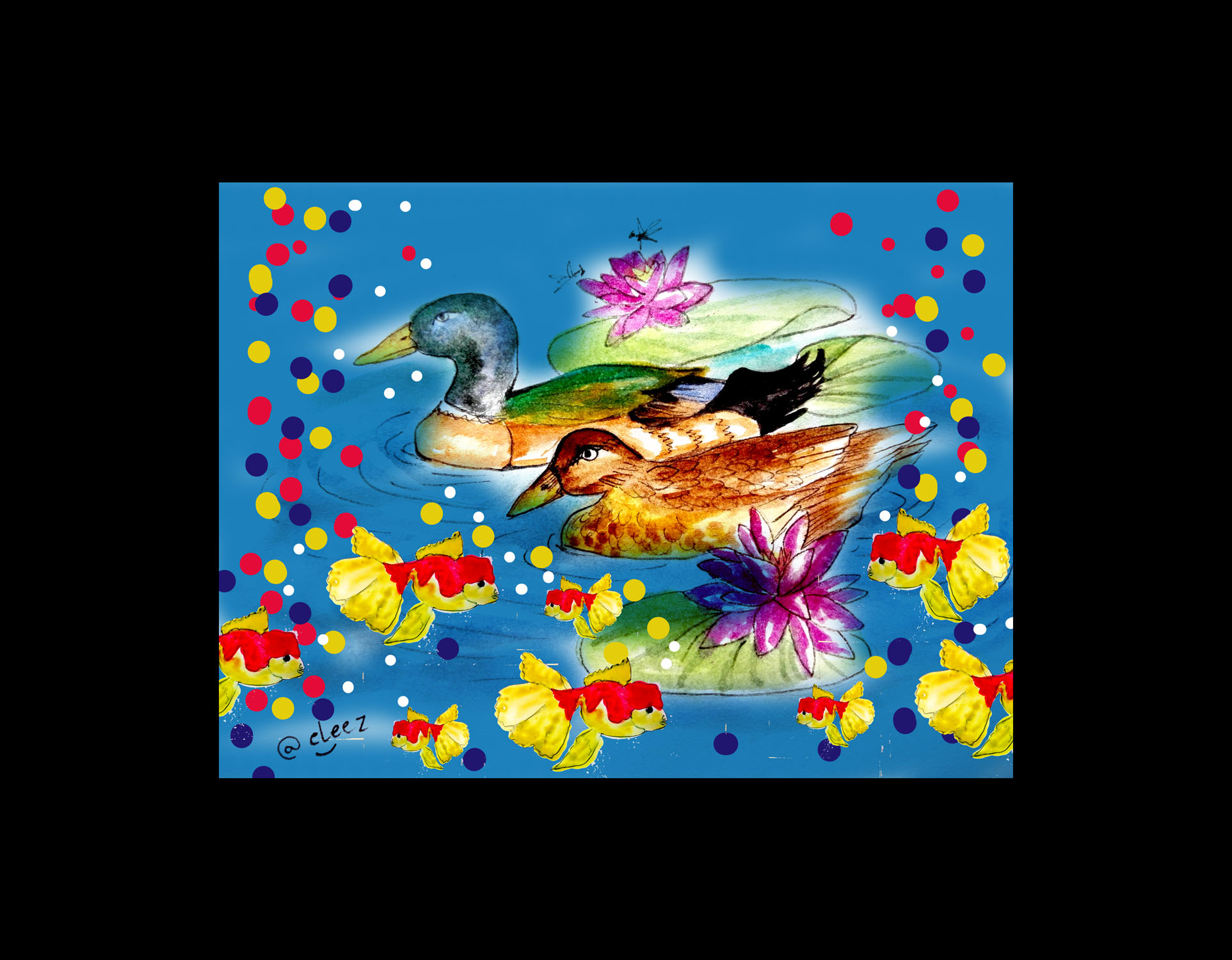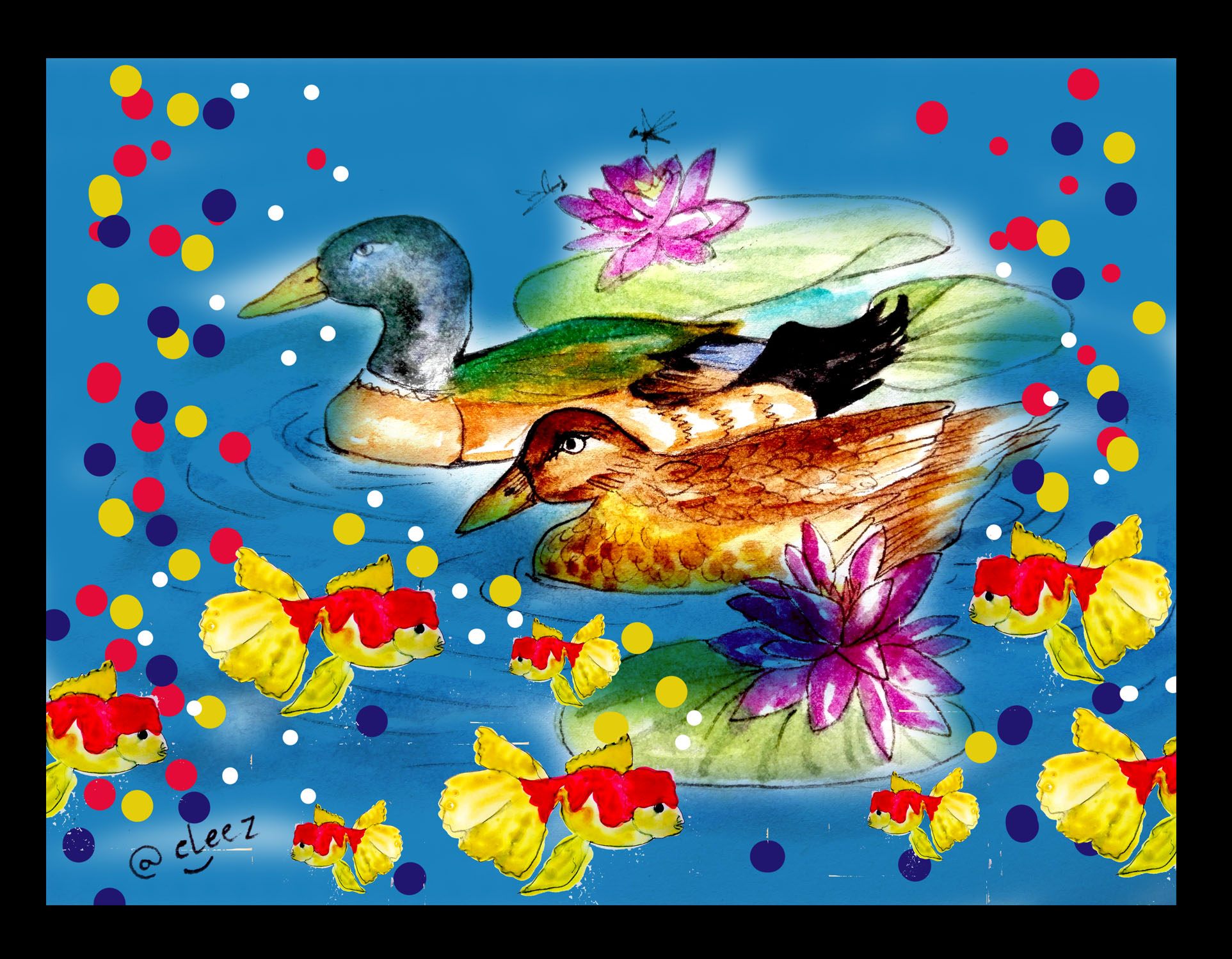 i have a new painting ,beautiful ducks and fishes , i mixed two painting and make this art , add the gold fish to ducks
