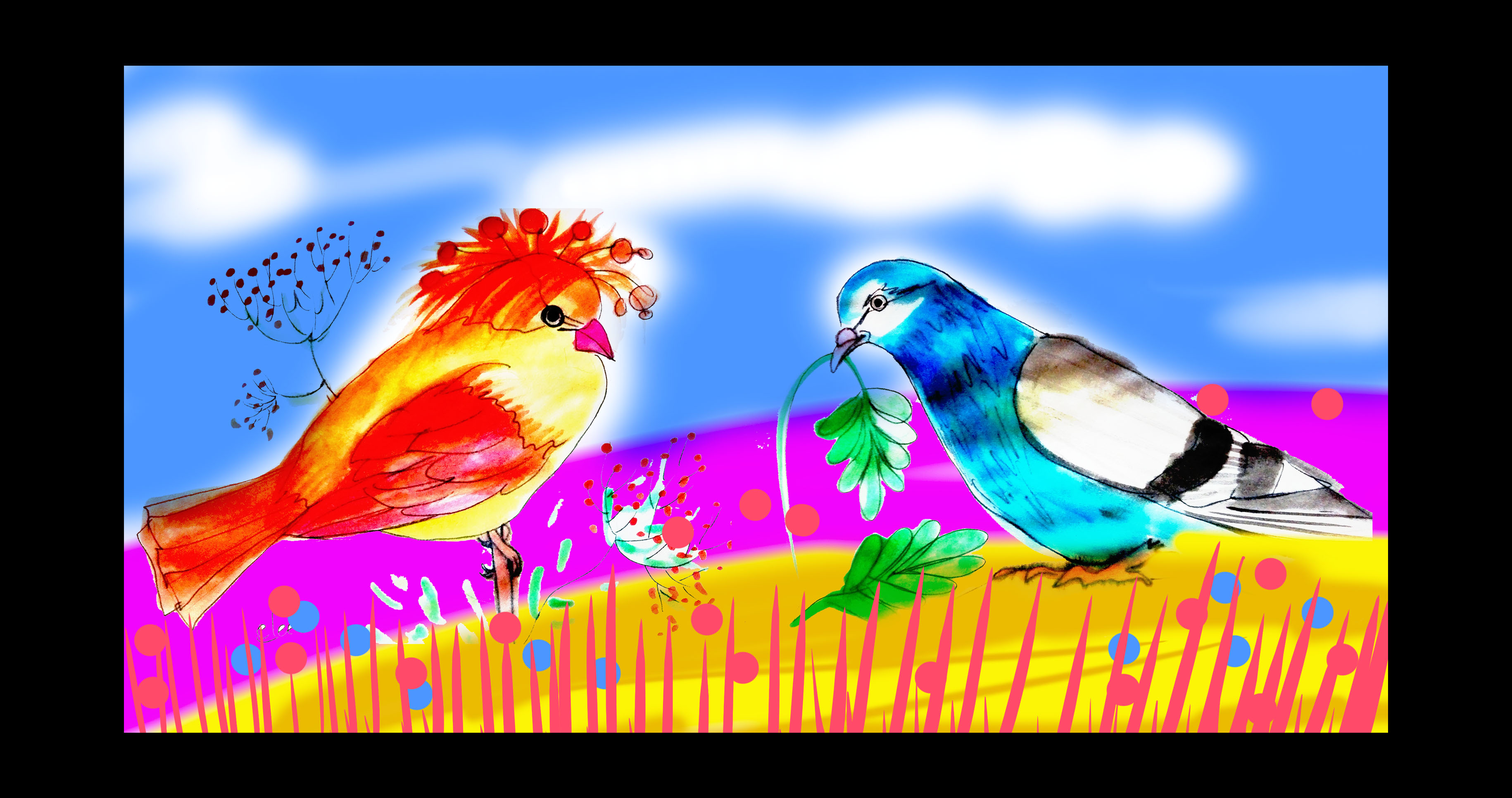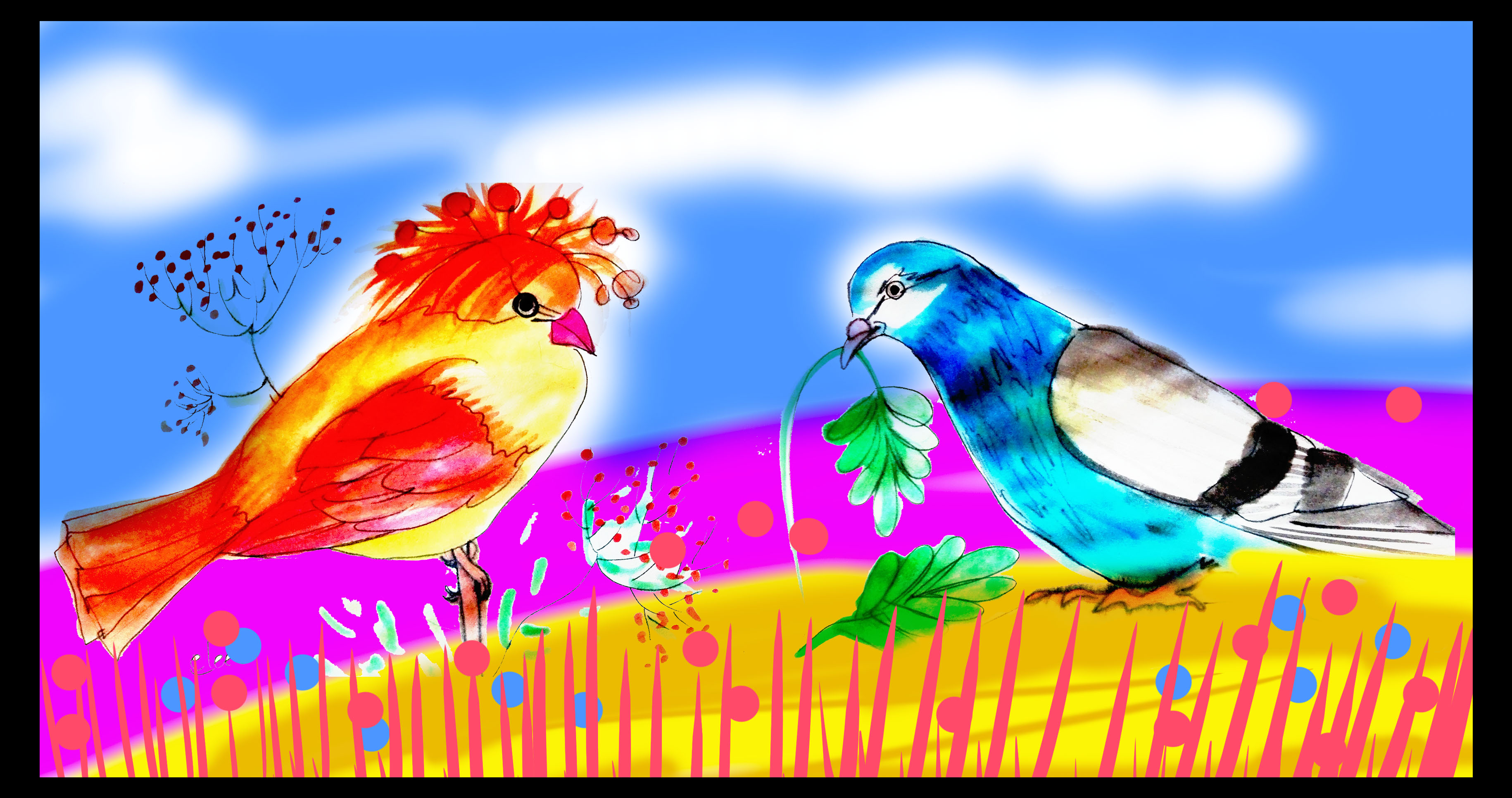 i have a new painting ,lovely birds, i mixed two paintings and make this art