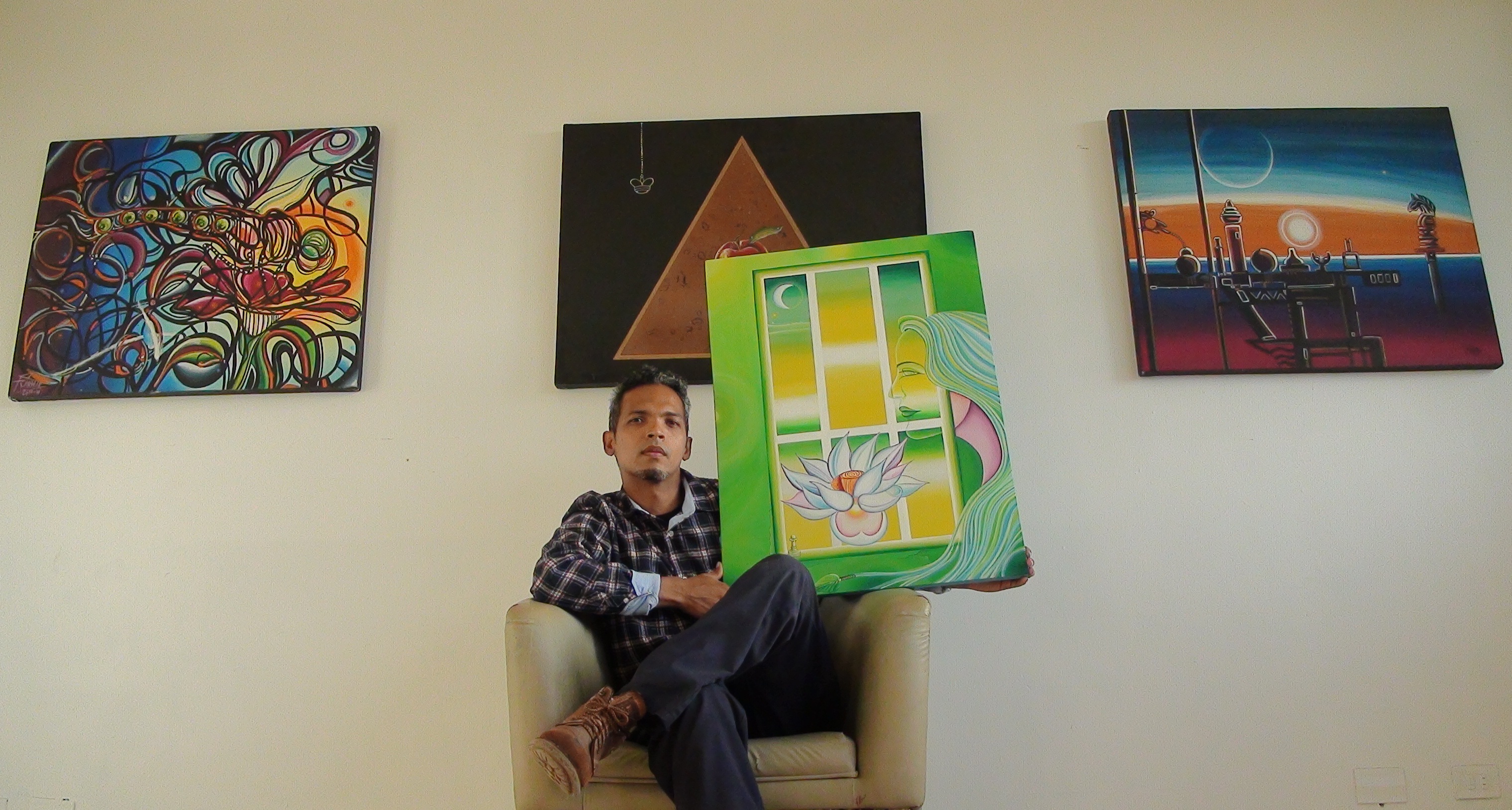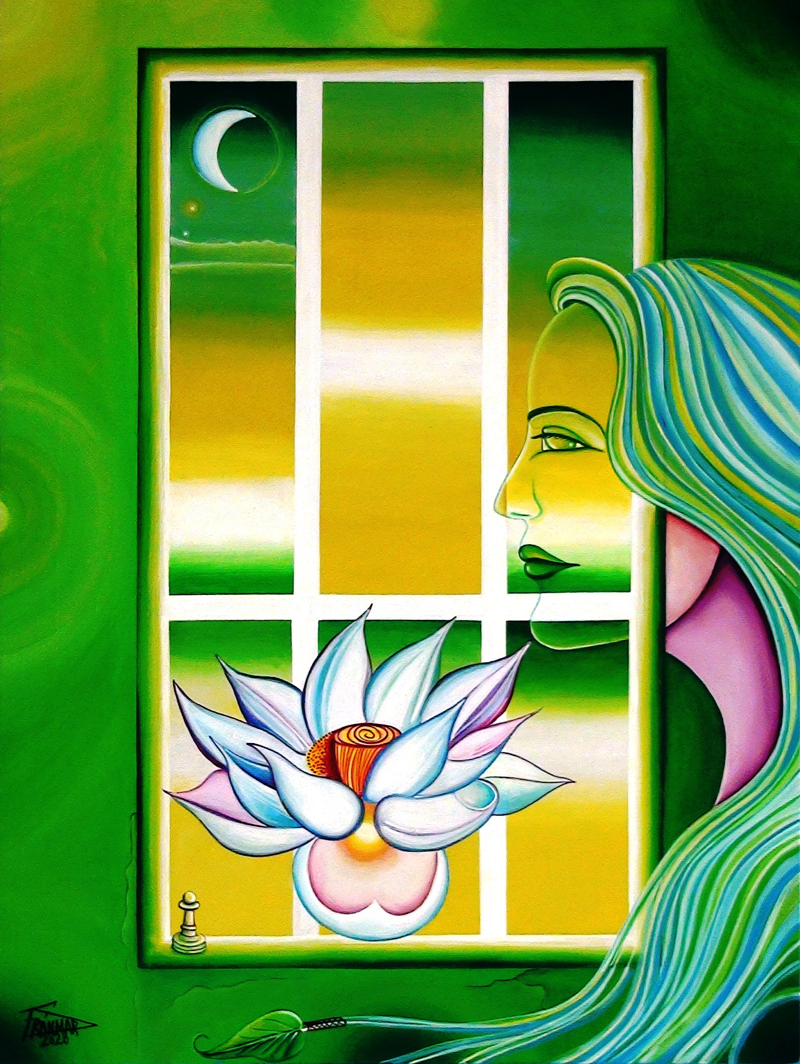 Saludos, amigos a continuación presento una obra de reciente creación: "Ventana A-B" (la cual he publicado en Facebook anteriormente con otra fotografía). Esta pintura está inspirado en "Ventana" (también publicada anteriormente aquí en Steemit, en diversos sitios de Facebook y en Instagram). Pueden visualizarlas una debajo de la otra respectivamente. Nuevas versiones de la realidad surgen. Son eternos retornos de espacio, tiempo y memorias contenidos en la energía gráfica de la luz y el absoluto silencio obscuro. Para pintar la realidad hay que adentrarse en la fantasía de lo aún no creado, ni sospechado. Me descubren ilusiones que lindan al margen de la locura; otra infancia.