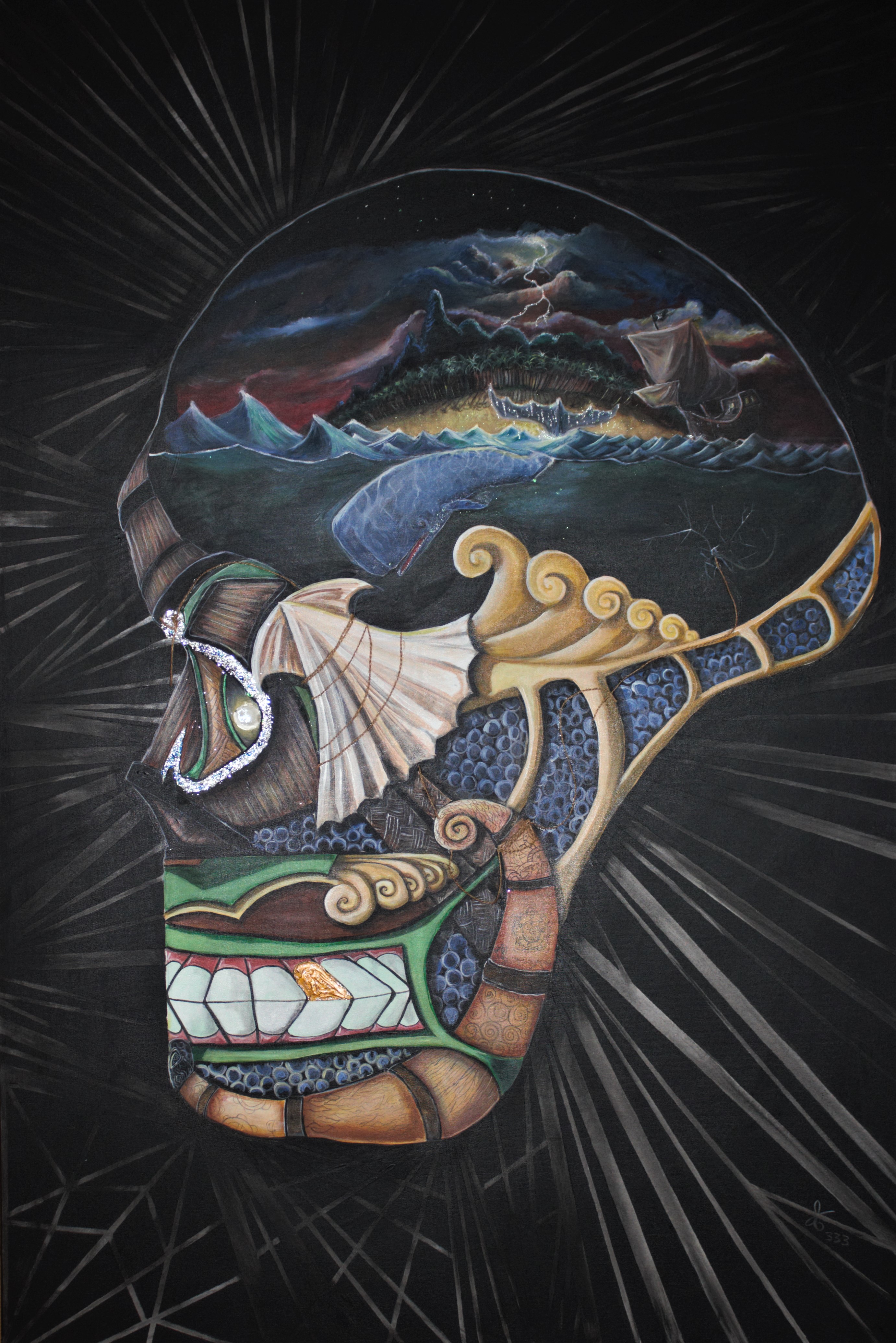 Rage and Serenityjuancaart (25)in #painting • 5 years ago That moment of peace broken by a sudden change. In this painting I portrayed the near death feeling of a whale being hunted by a ship. #art #steemit #skull