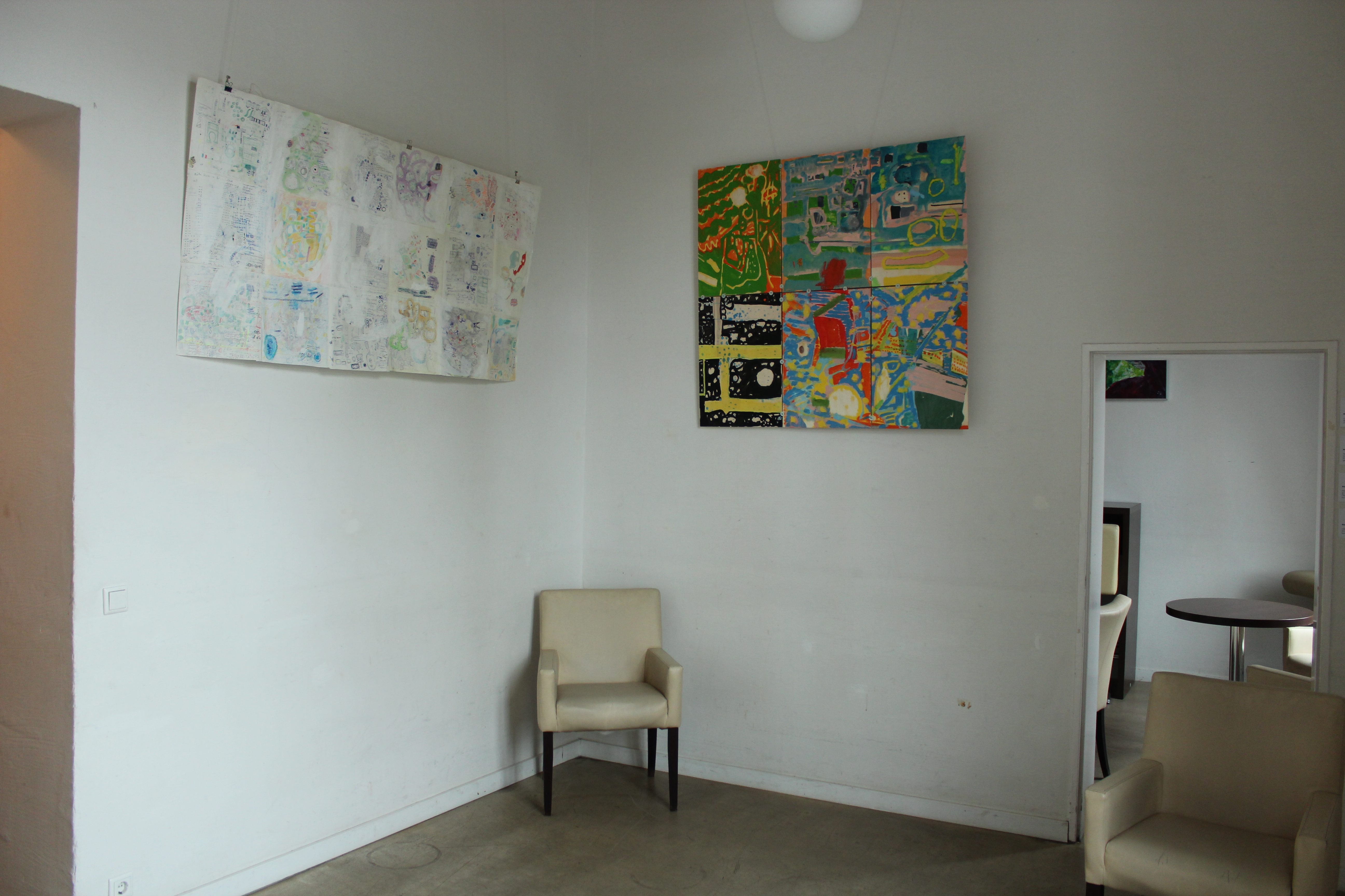 Ausstellung im Bahnhof Düsseldorf Gerresheim, ( Teil der Gruppenausstellung " Ab morgen wird alles anders") Wolken verändern ihre Form. Ihre Form ist nie endgültig. Die vorgestellten Werke haben die gleiche Eigenschaft. Notizen vor dem Computer und ergänzende Zeichnungen werden Mittelstück zwischen der ordnenden Wolke der Maschinen und der sich windenden Intelligenz.