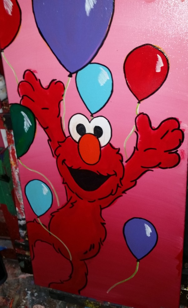 I painted Elmo for my niece as a Christmas gift. It is a 12x24 acrylic on canvas. I like the way it came out. I'd like to go back and do a similar one, but transform Elmo with different colors. Everyone is always scared to touch big characters like this...I may do that soon....Imagine a blue Elmo.