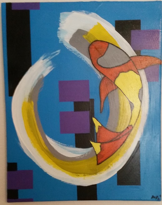 I love koi fish. I am not the best artist in the world, but this piece was fun to do. It has a lot of my favorite colors, and the fish just finishes it off to perfection in my brain.