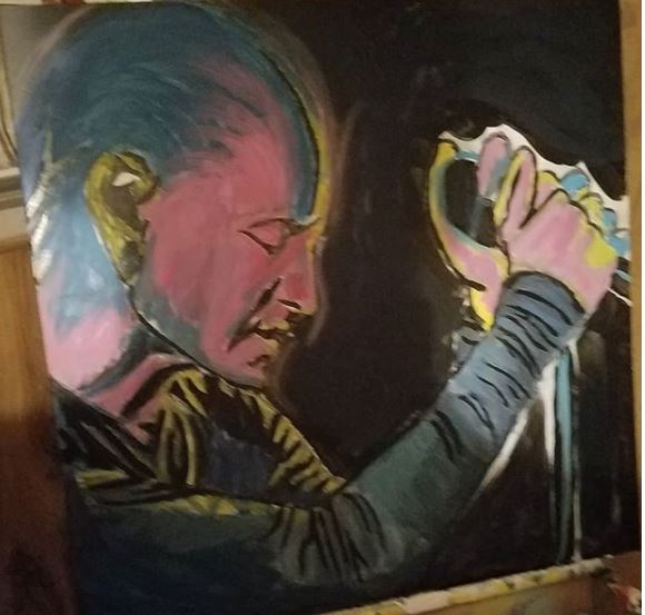 So my kid likes that band Linkin Park, and I figured that would be a good place to start. So i started with this portrait, and got about two hours deep(yes I am slow) before I decided to trash it. I just didn't feel right. I took white paint and completely covered the whole thing.