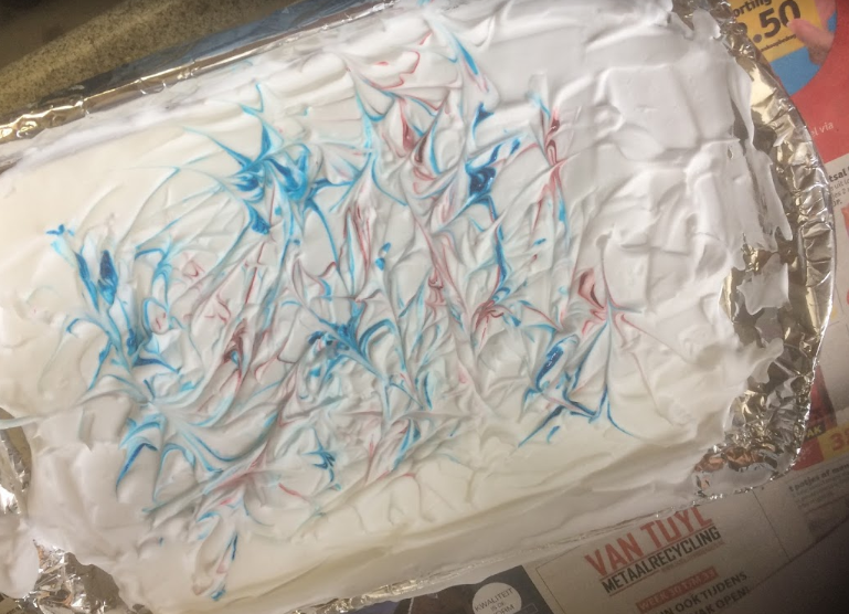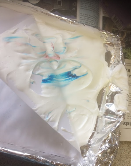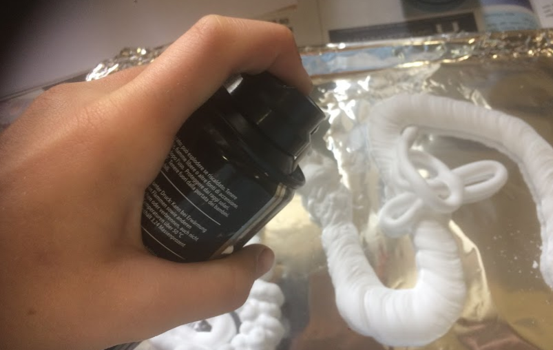 If you want to make more of these, you can take new shaving foam or you use the old foam were's still a bit of color on.