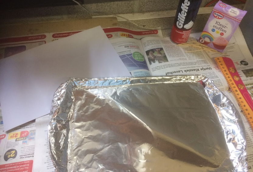 - A tray with aluminum foil