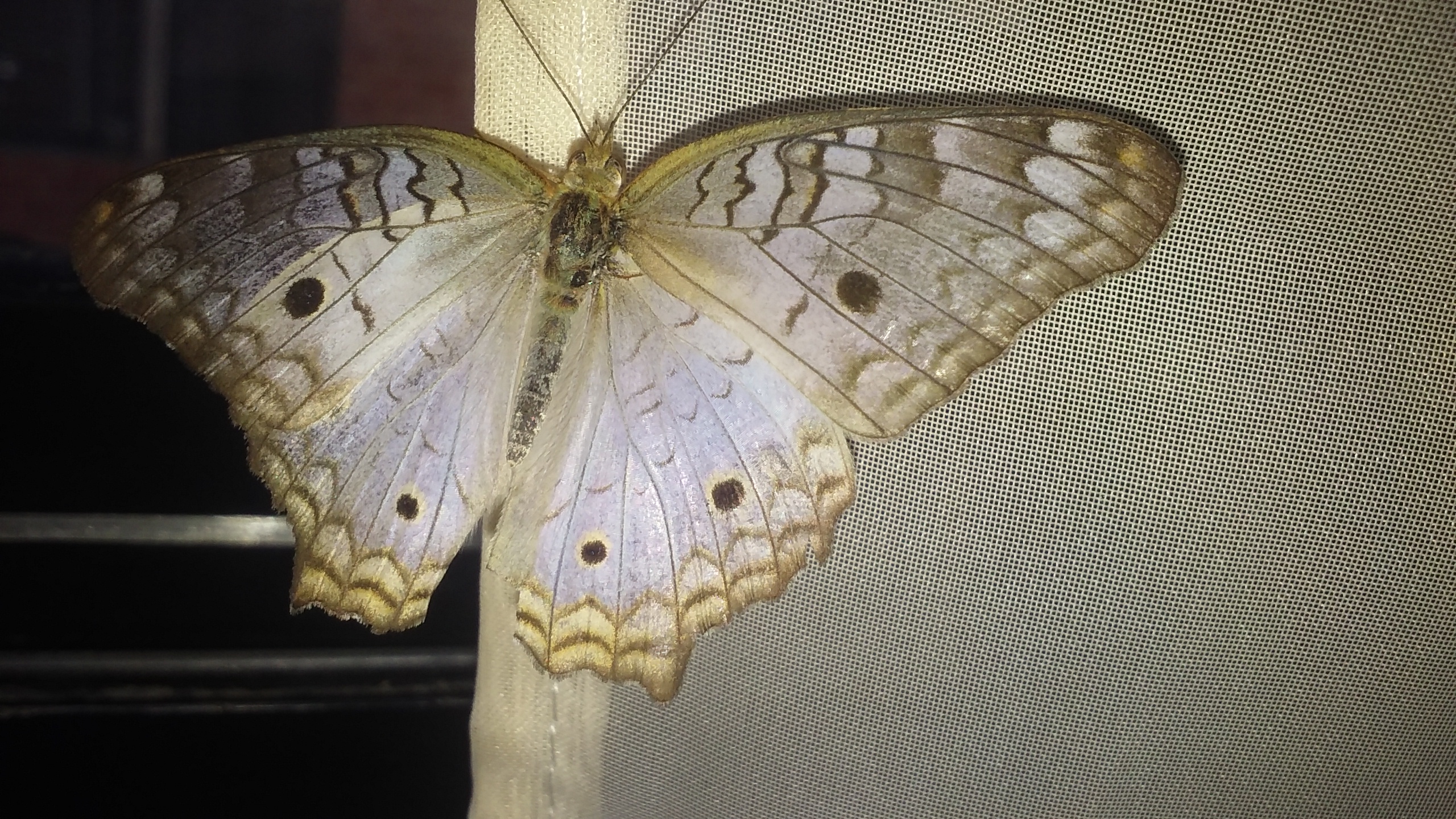 Estos días, una mariposa vino a mi casa en la noche. Muy bonita y la dejamos hasta el día siguiente.