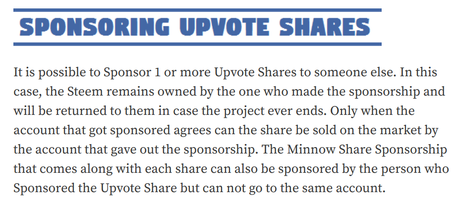 So basically it's possible to sponsor someone giving them the benetits of the upvotes while the steem will be returned in case the project would come to an end.