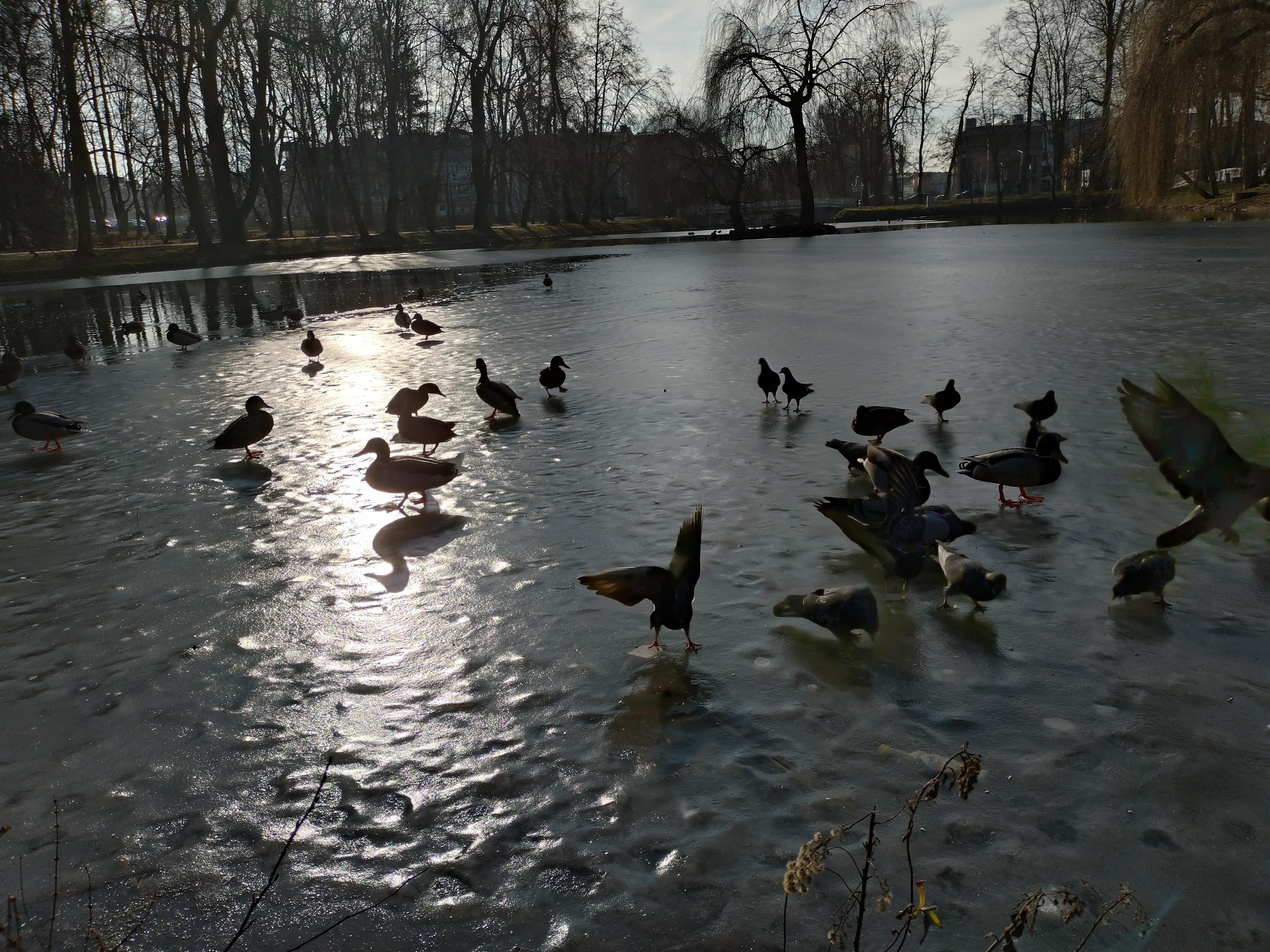 Yesterday I was walking in a public park in Mińsk Mazowiecki, Poland. The pond was pretty crowded, but not because of people. It was birds who ruled the pond. 😜 Pigeons and ducks gathered together, awaiting passers-by who could feed them. The weather was beautiful, and the atmosphere was very peaceful. Do you like such places?