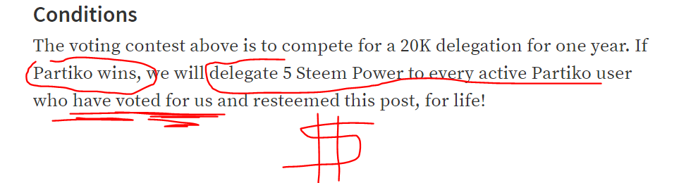 The voting contest above is to compete for a 20K delegation for one year. If Partiko wins, we will delegate 5 Steem Power to every active Partiko user who have voted for us and resteemed this post, for life!