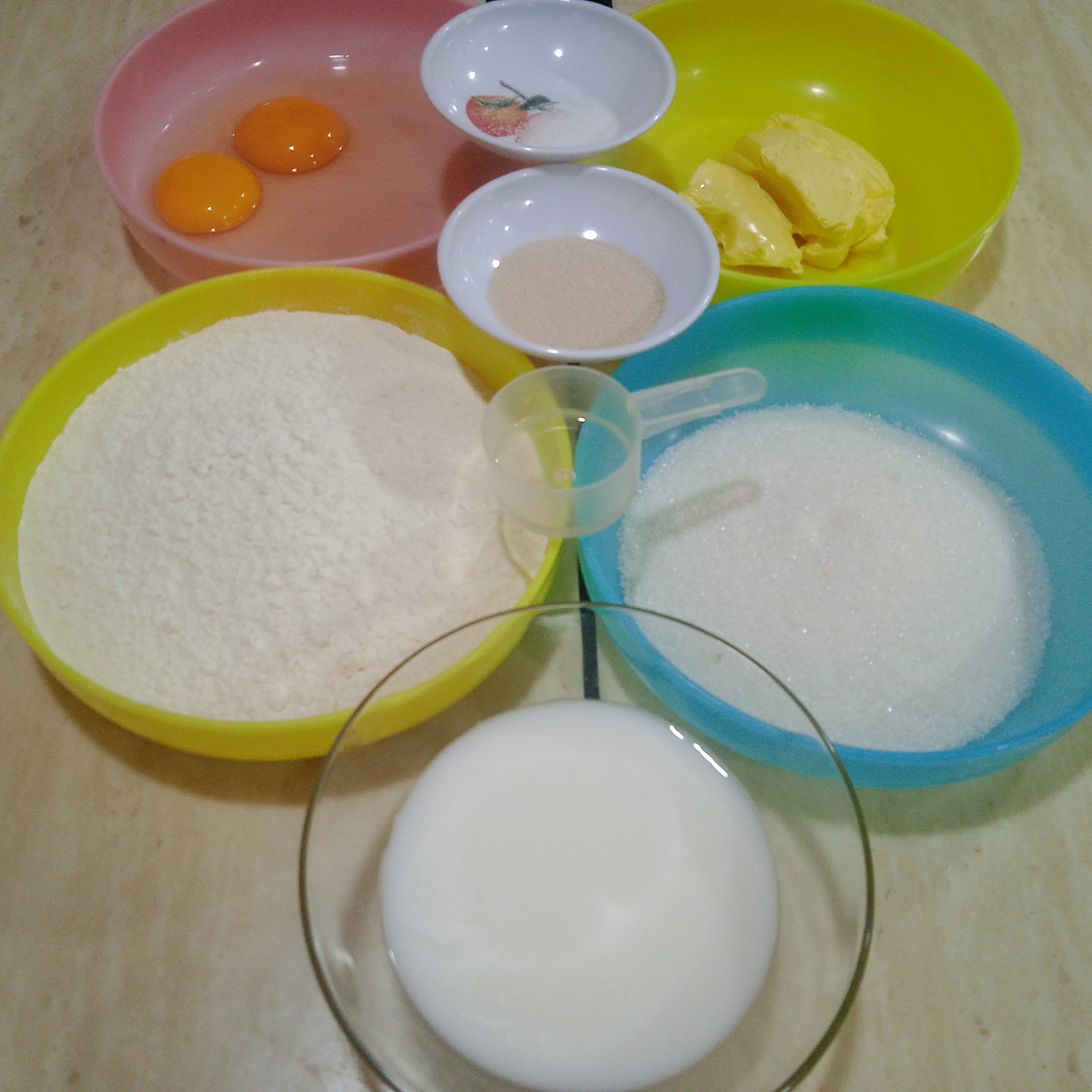✓ Preparamos el fermento en una taza colocamos la leche tibia, la levadura y una cucharada de azúcar, removemos muy bien para evitar grumos y tapamos por unos 10 a 15 minutos hasta ver que nuestra levadura esté espumosa.