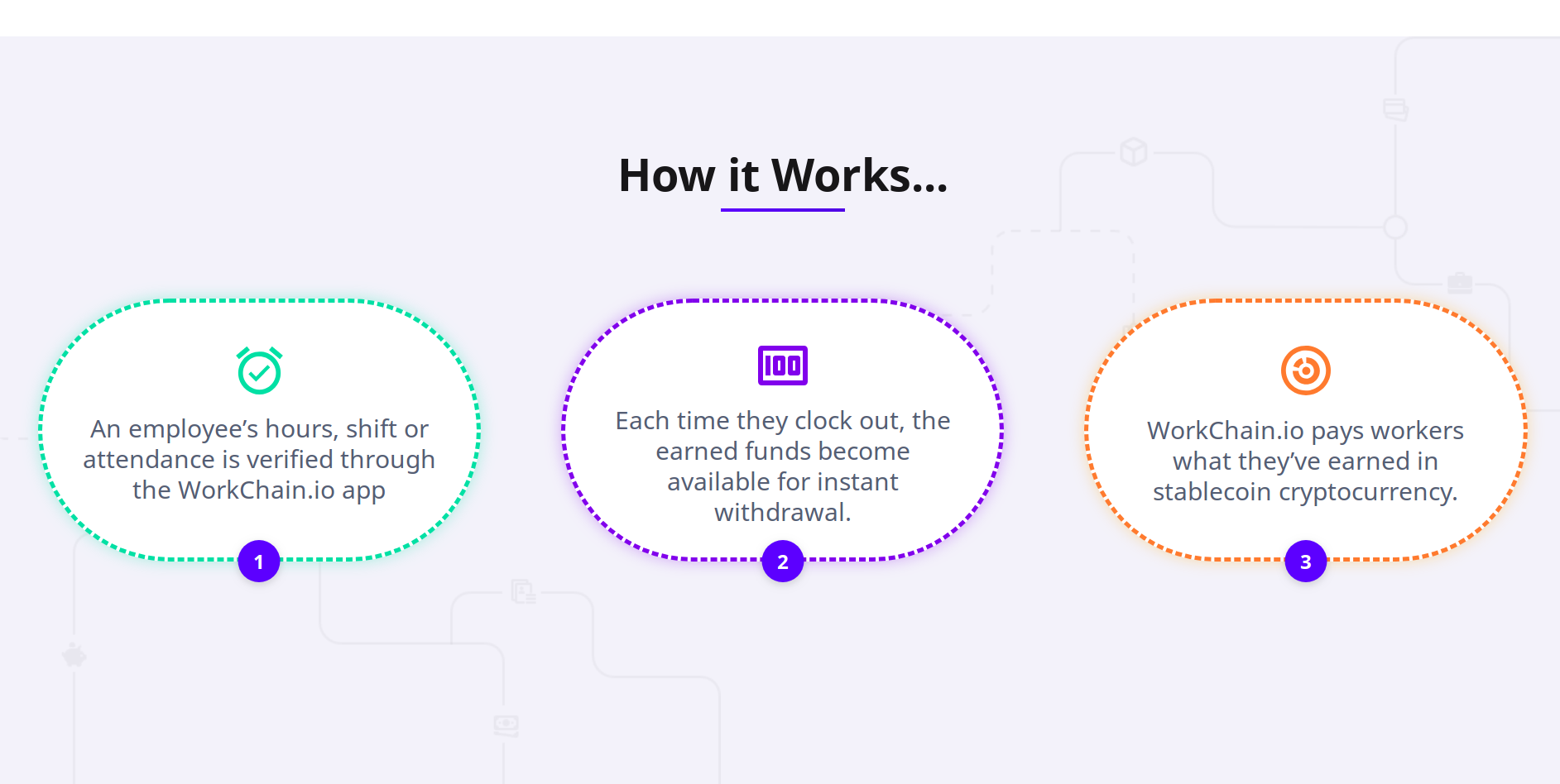 These work records then provides the proof of work for all workers as their working activities has been recorded to it which can then be used to trigger automatic payments of funds to the workers through a smart contract enabled channel that has been previously agreed upon by the employer and the employee. These payments are done through the use of cryptocurrency and can be retrieved using any currency the worker prefers.