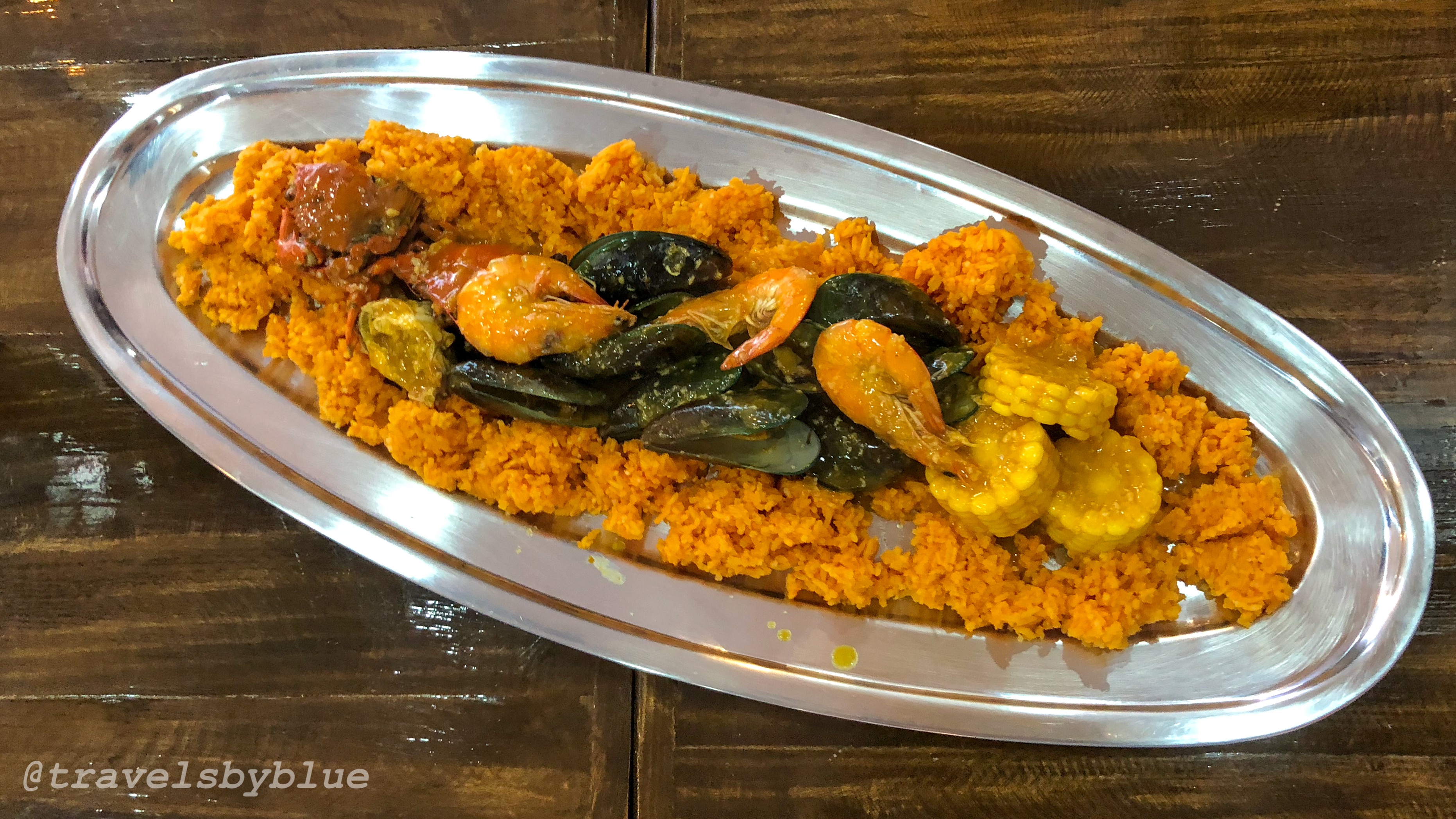 We have the impressive looking and mouthwatering Seafood Festival, it is similar to seafood paella with sticky rice, corn cobs, mussels, shrimp and crabs on a yellow buttered garlic sauce. This plated meal is good for 3-4 persons, we are group of 6 by the way.