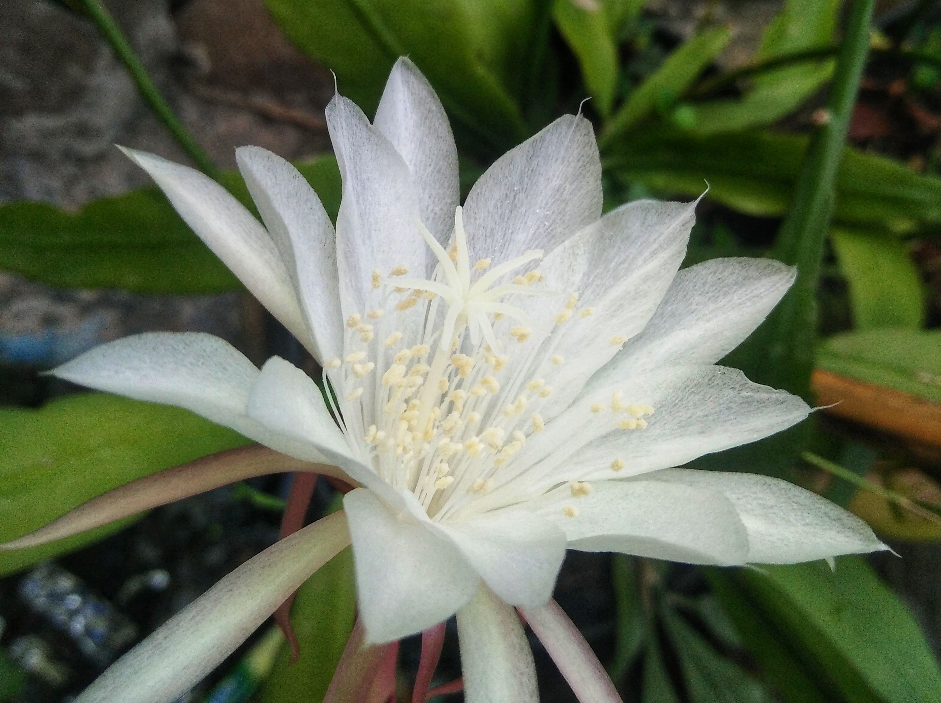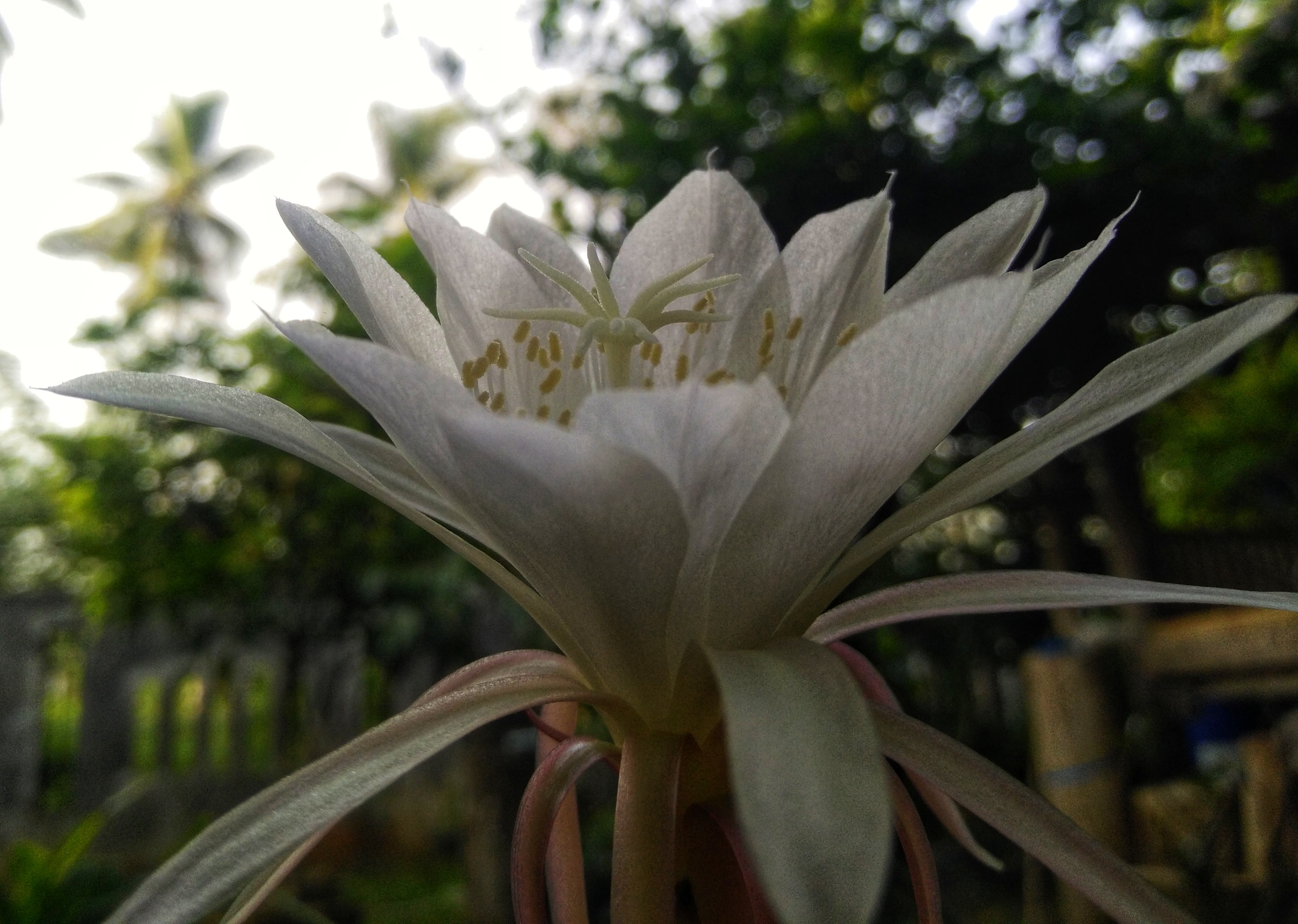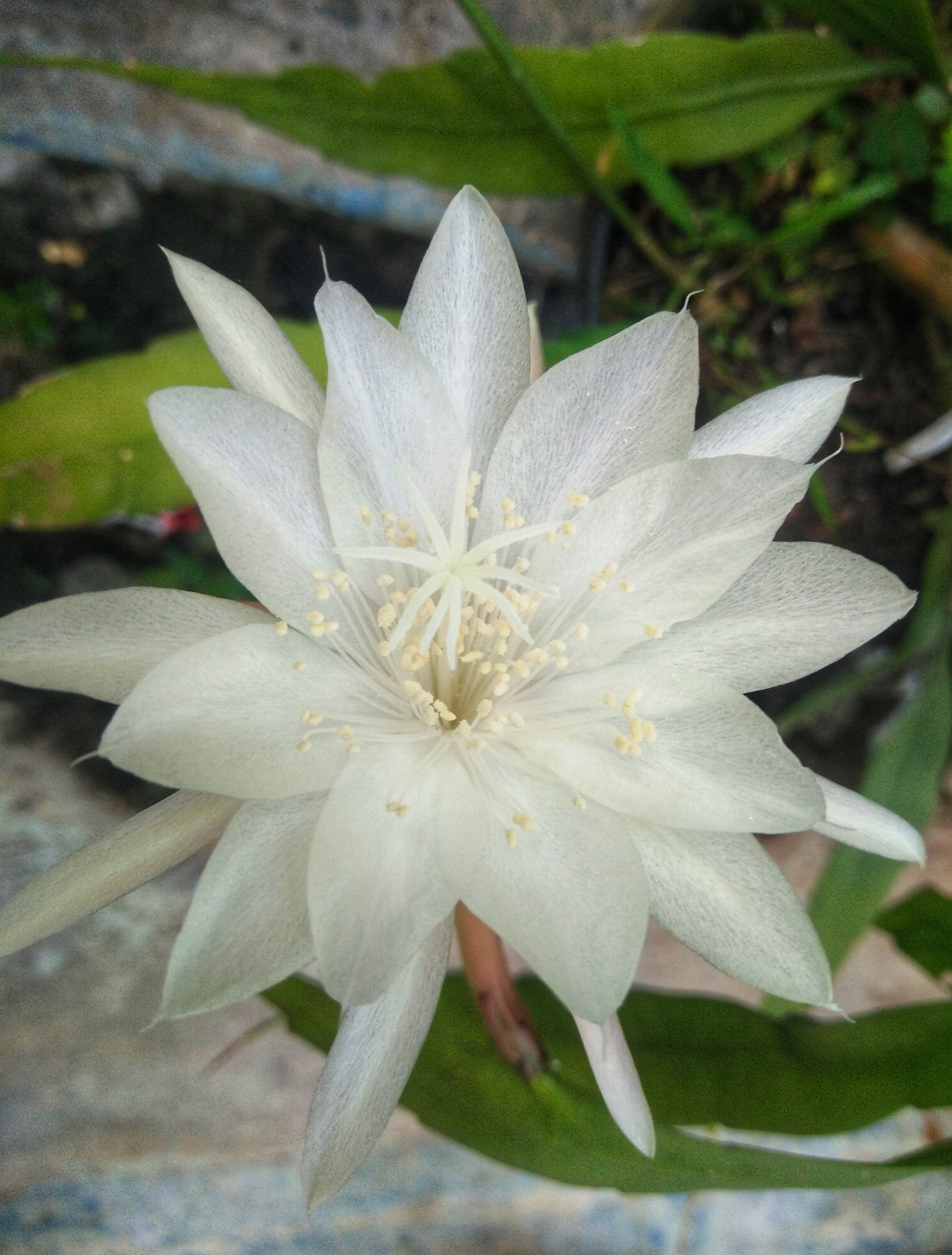 The picture that I show here is one of the Queen of the Night collections of my wife planted in the side yard of our house, there are several types that we collect, and are distinguished by their size, while the color is almost the same, namely white or slightly yellowish , and all our Queen of the Ningt collections are refreshingly fragrant