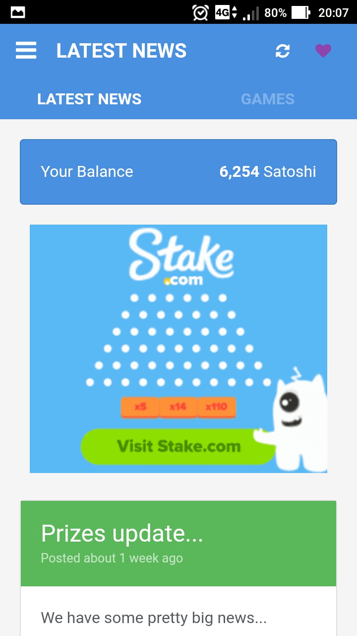Sa home menu ay makikita mo na merong latest news at games na tabs. Yung latest news ay wag mo ng basahin maigi. Pumunta ka na lang agad sa games. So sa games makikita mo na meron kang 1 FREE SPIN every 15 minutes which is kikita ka ng up to 100 satoshi. Maliit lang pero pag naipon ay pwede mo rin pang jollibee or dagdag pamasahe.