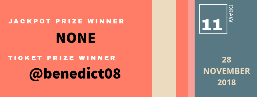 Jackpot prize is at 0.100 Steem plus 50% of total ticket sales. If no one wins on that particular round, the prize will be added to the next round. The other 50% goes to charity fund that will be utilized for the project which @randomkindness believes of good cause.