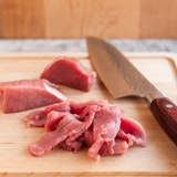 Slice the beef into thin slices: Remove the beef from the freezer and immediately use your sharpest knife to slice the beef into very thin slices. Slice across the grain, and aim for slices no thicker than 1/4-inch. Once sliced, keep the beef covered and refrigerated until ready to serve.