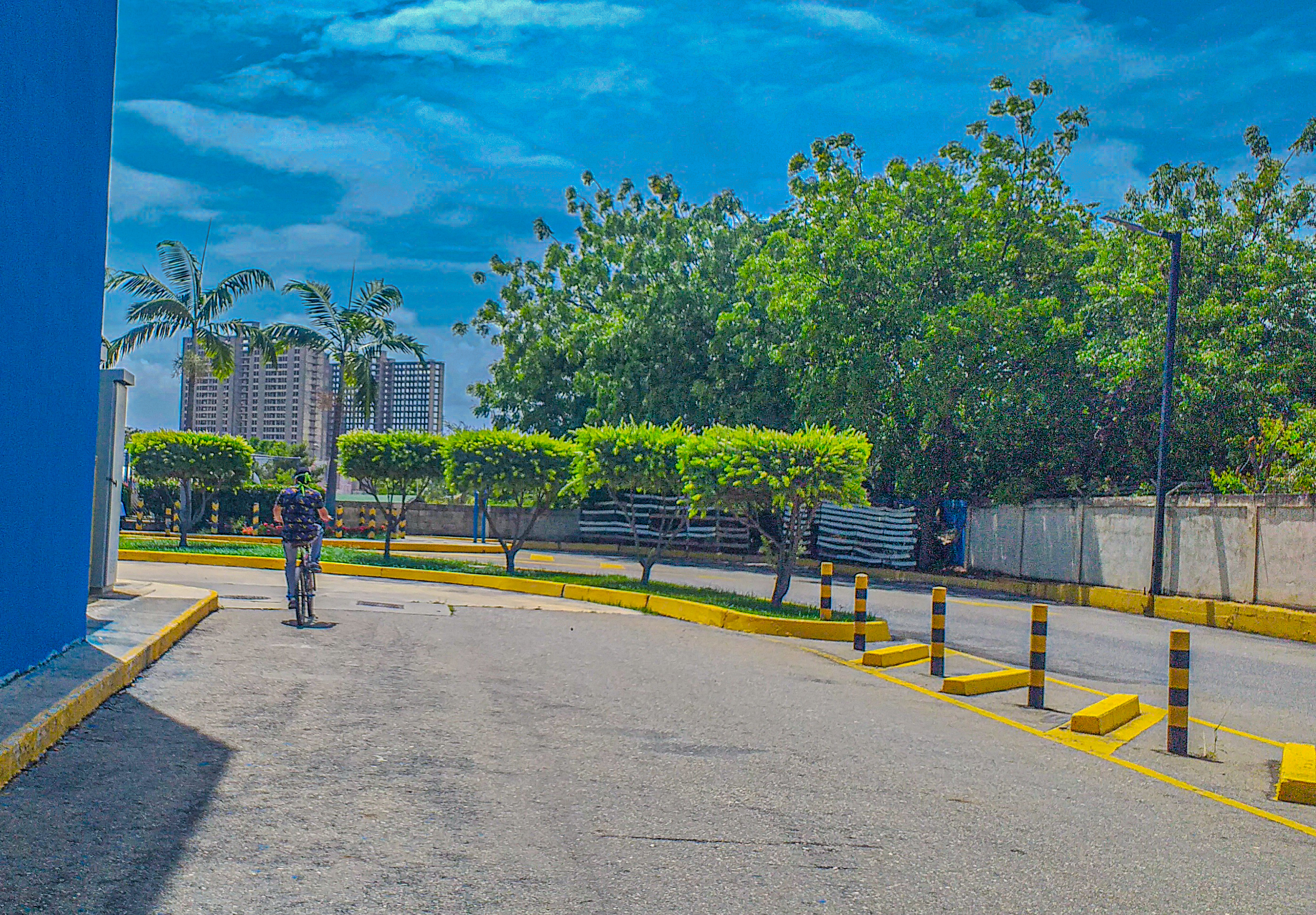 The smart cyclist. El ciclista inteligente.curatorris (57)in #photo • 5 years ago The cyclist who decides to take a beautiful road Hora6:00 pm the espace CamaraNikon l830 modomacro iso100 mm50 The cyclist who decides to take a beautiful road #photography #color #nature #urban #architecture #construction #blue