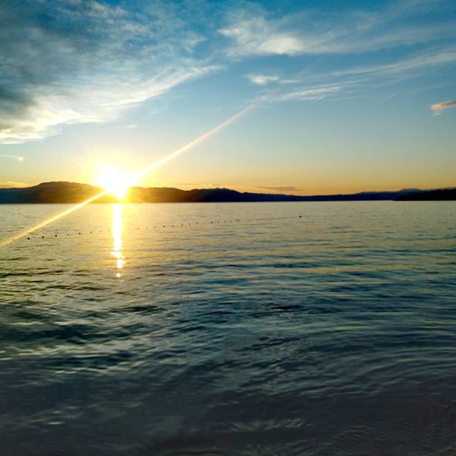 This sunset is fantastic. The blue skies and blue sea and wonderfully complemented by the bright sun and sun rays. FANTASTIC