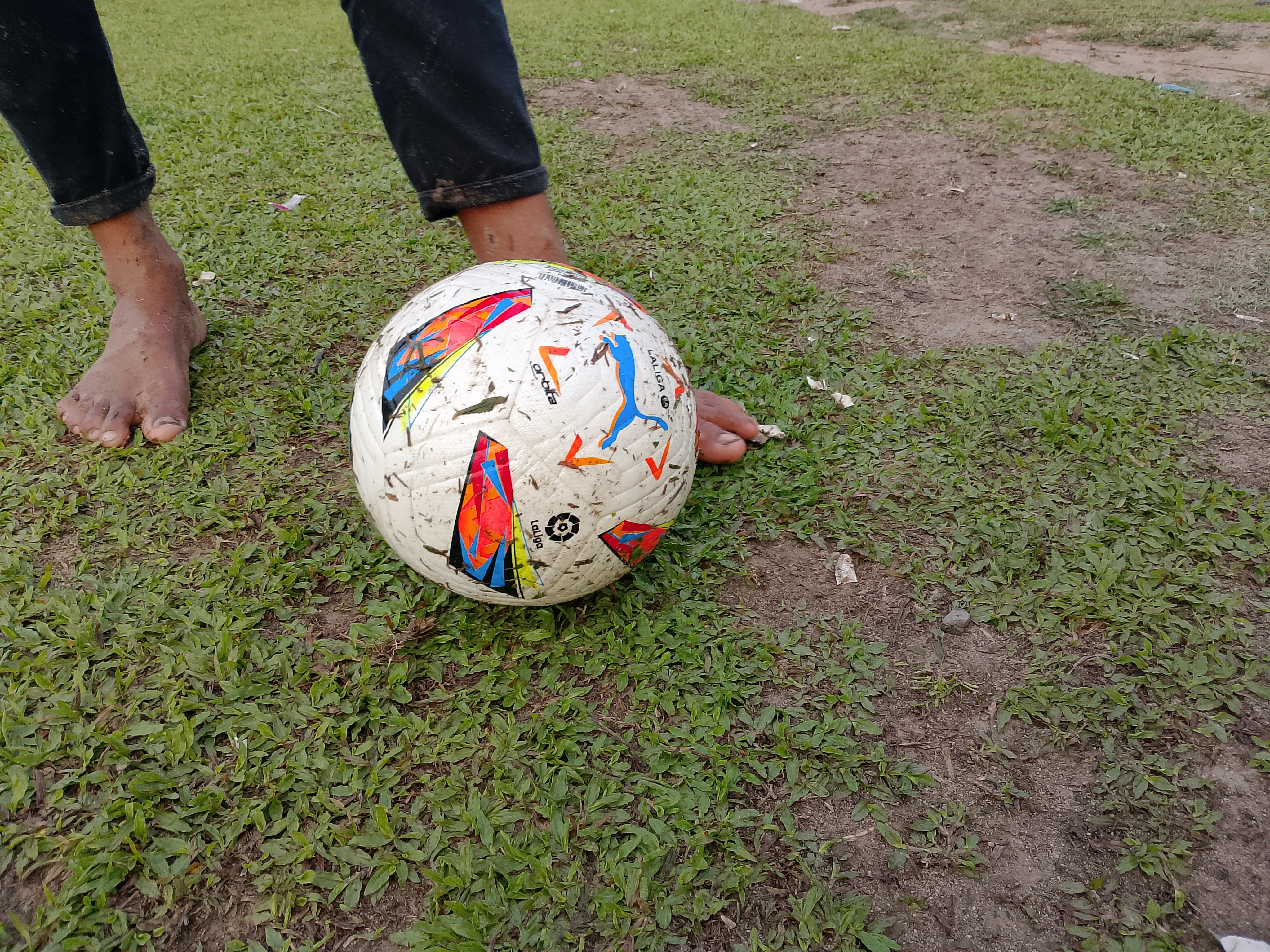 A football has been brought for playing football. Suddenly, we made a plan that from today we will play football early in the morning. That’s why a football has been brought here. You can see this football is strong and durable. The football is quite soft and comfortable to play with.