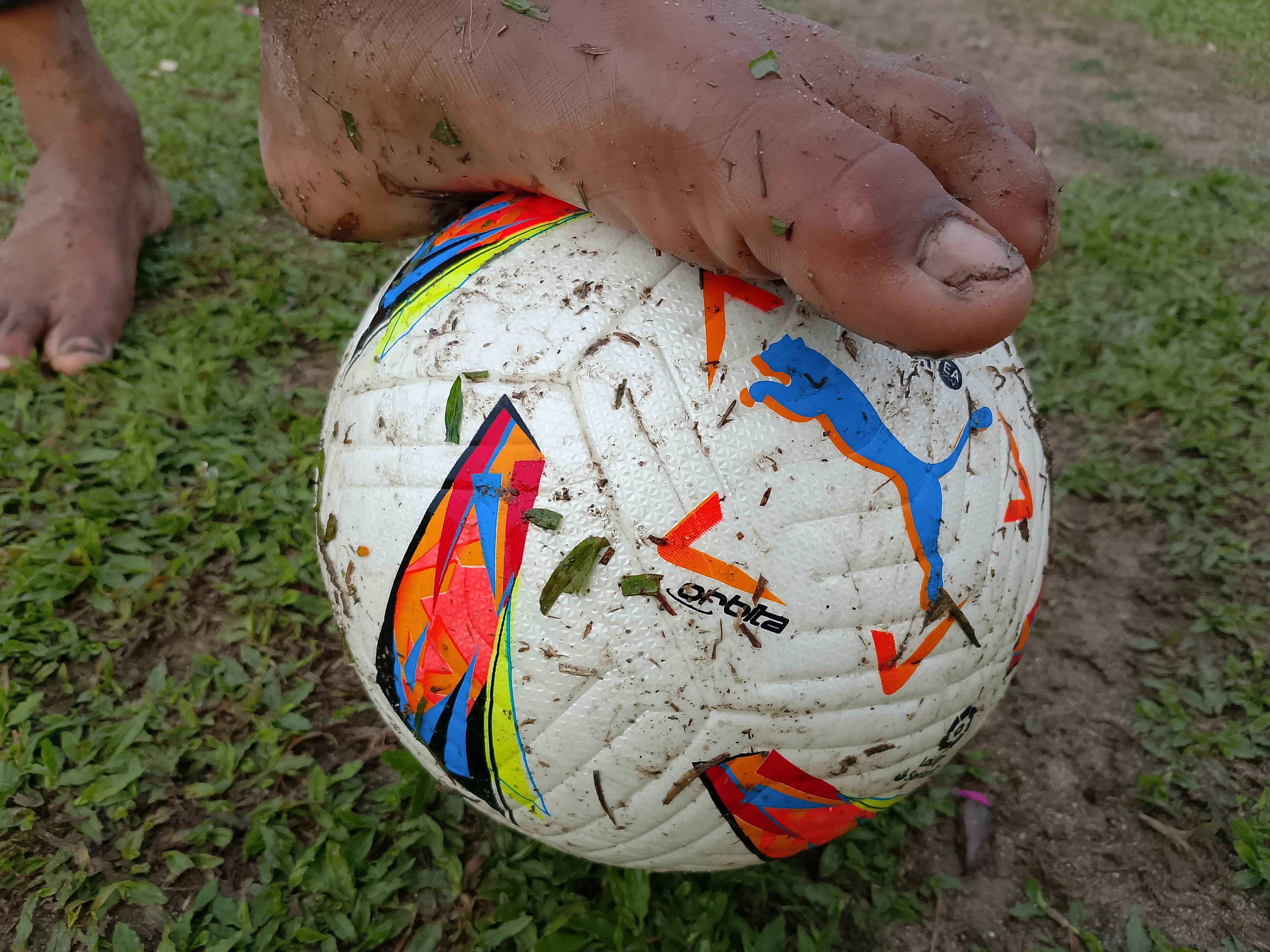 That’s why we brought this football. Today, we went to a field with the football to play and played there for a while. Playing football in the morning feels really good. That’s why we brought the football. Later, I took a few pictures of it, which I have shared with you.