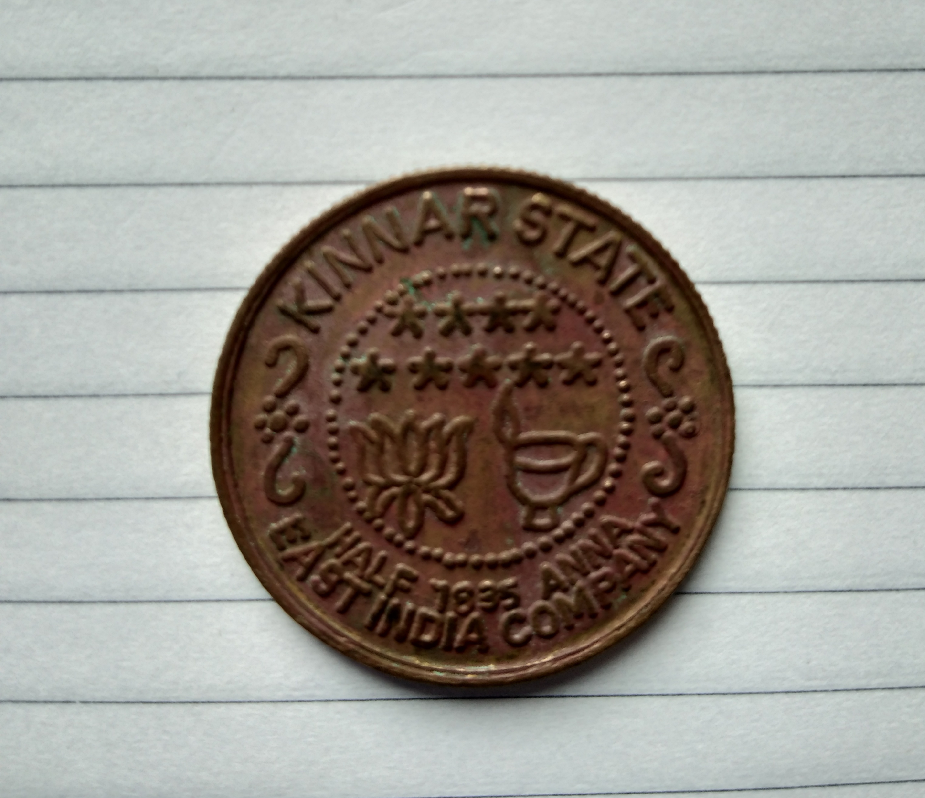 East india company ka yah coin 1935 mai bana ya tha coin sach bolo sach tolo yaha coin ke madhyam se bata ya gaya he ki sach bolna chahiye or sach tolna chahiye is coin ki value half anna he jo india me tab ke doran chalan me use hota tha coin ke aghe pura tolo ka sing he or piche ke side kamal or deep ka sing he or inme 11star hota he yaha coin aj bahot kimti or collection me hota he
