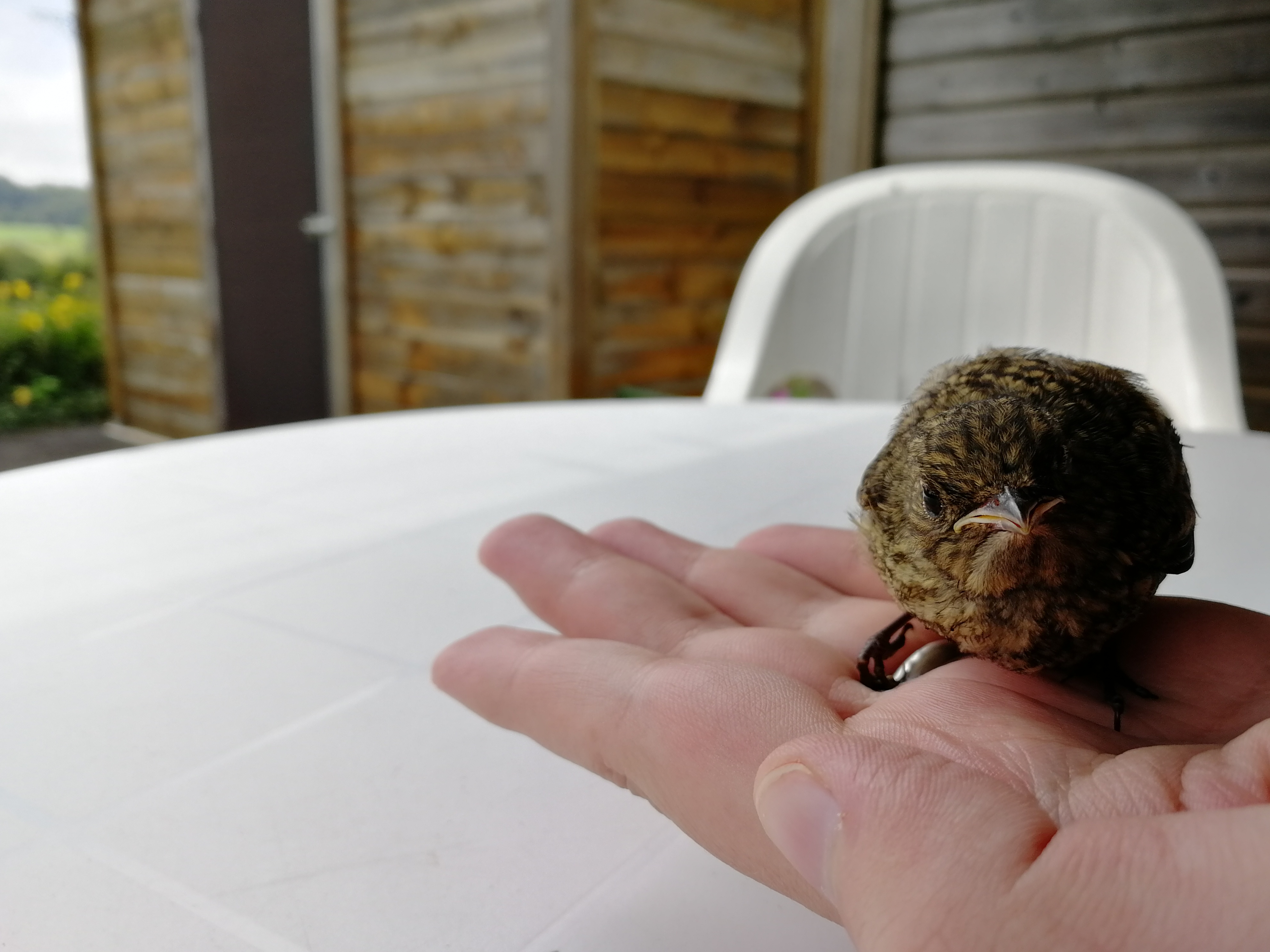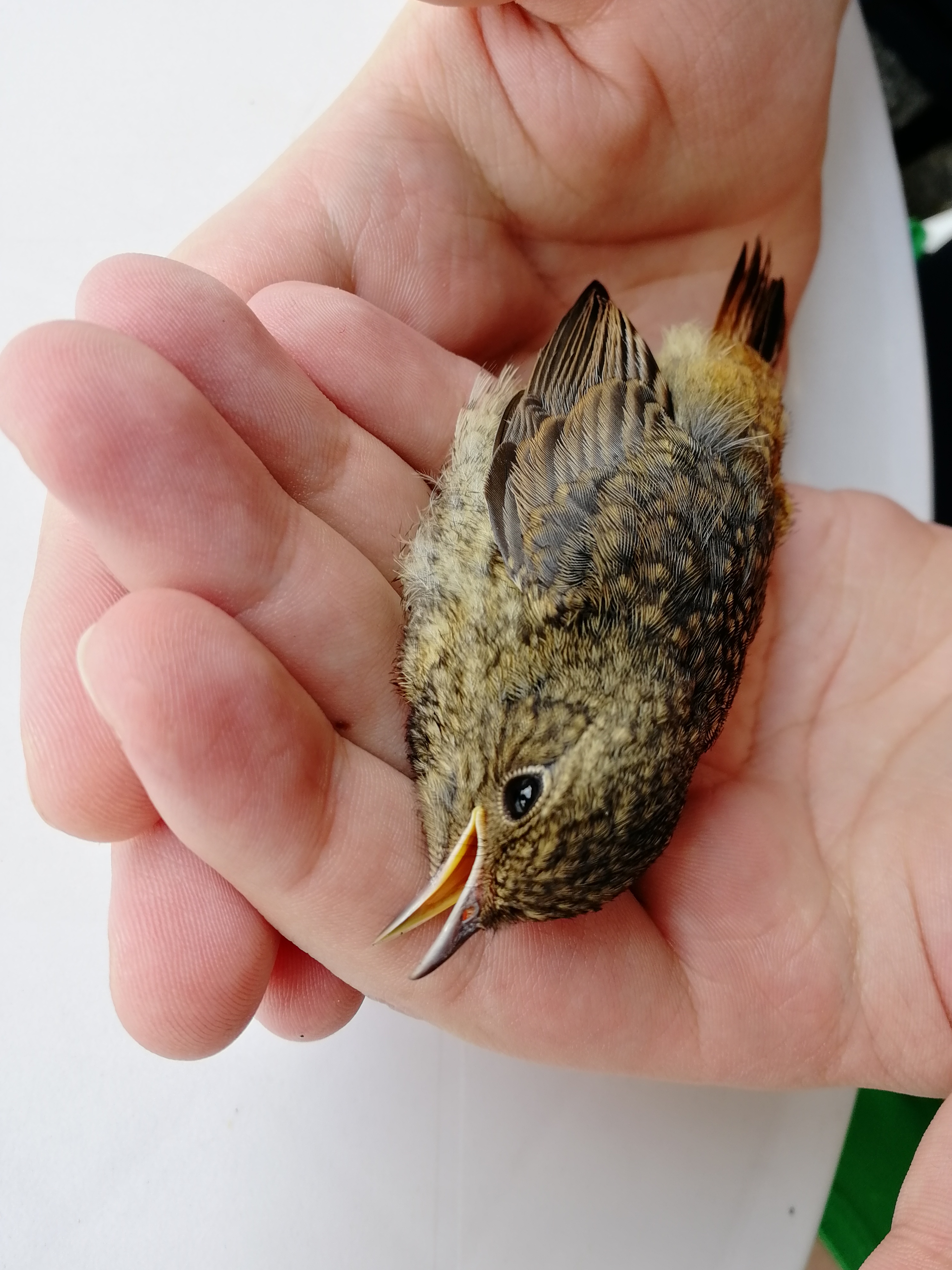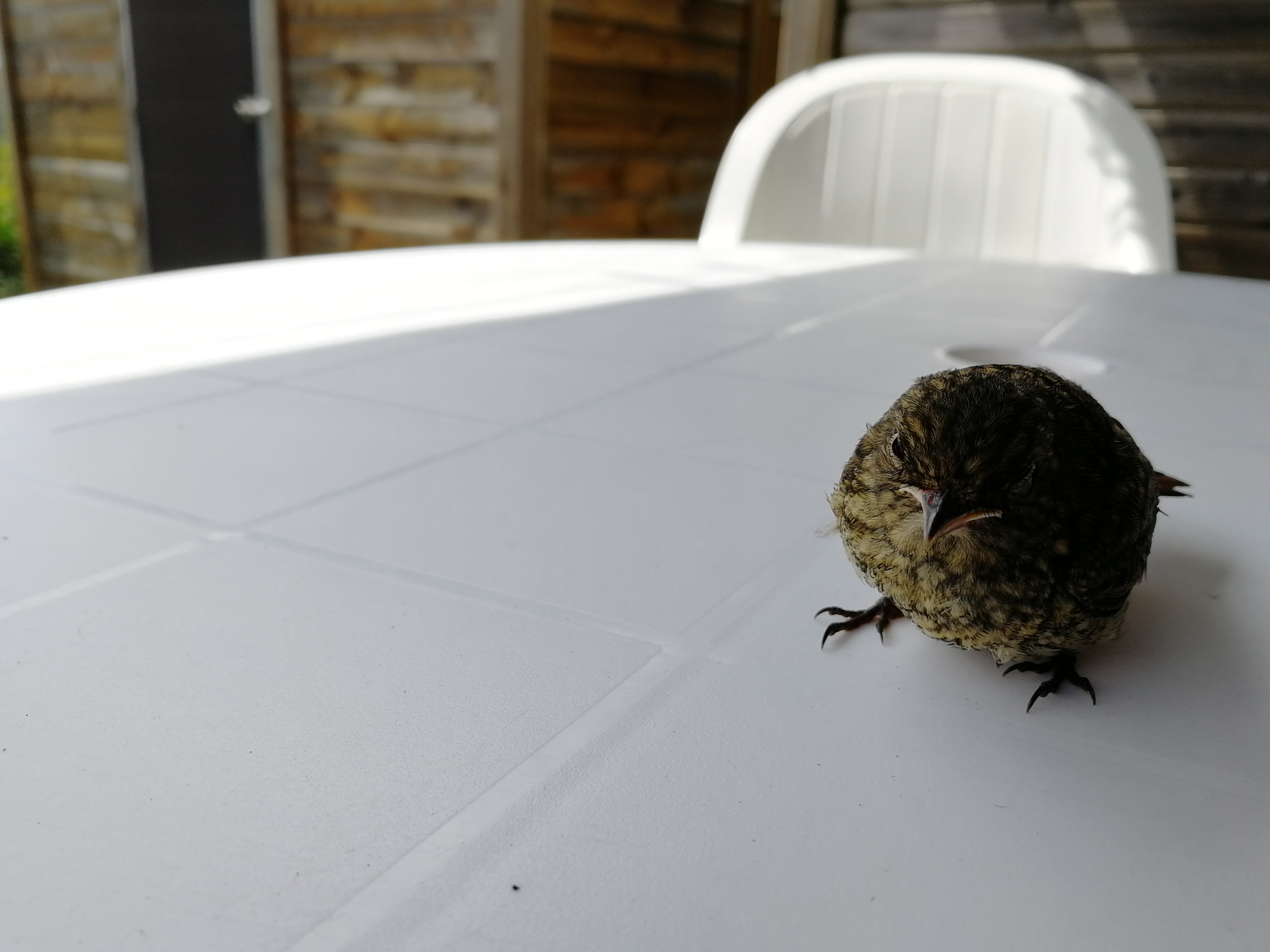 Побег от сороки чуть не закончился трагедией для маленькой горихвостки-чернушки. Спасаясь от опасности она врезалась в наше окно. Муж отреагировал на стук снаружи и, подбежав в окну, успел спугнуть сороку, уже готовую ударить птенца. Горихвостка приходила в себя минут 15, став на это время невольной участницей фотосессии. Потом резко вспорхнула и скрылась за крышей.