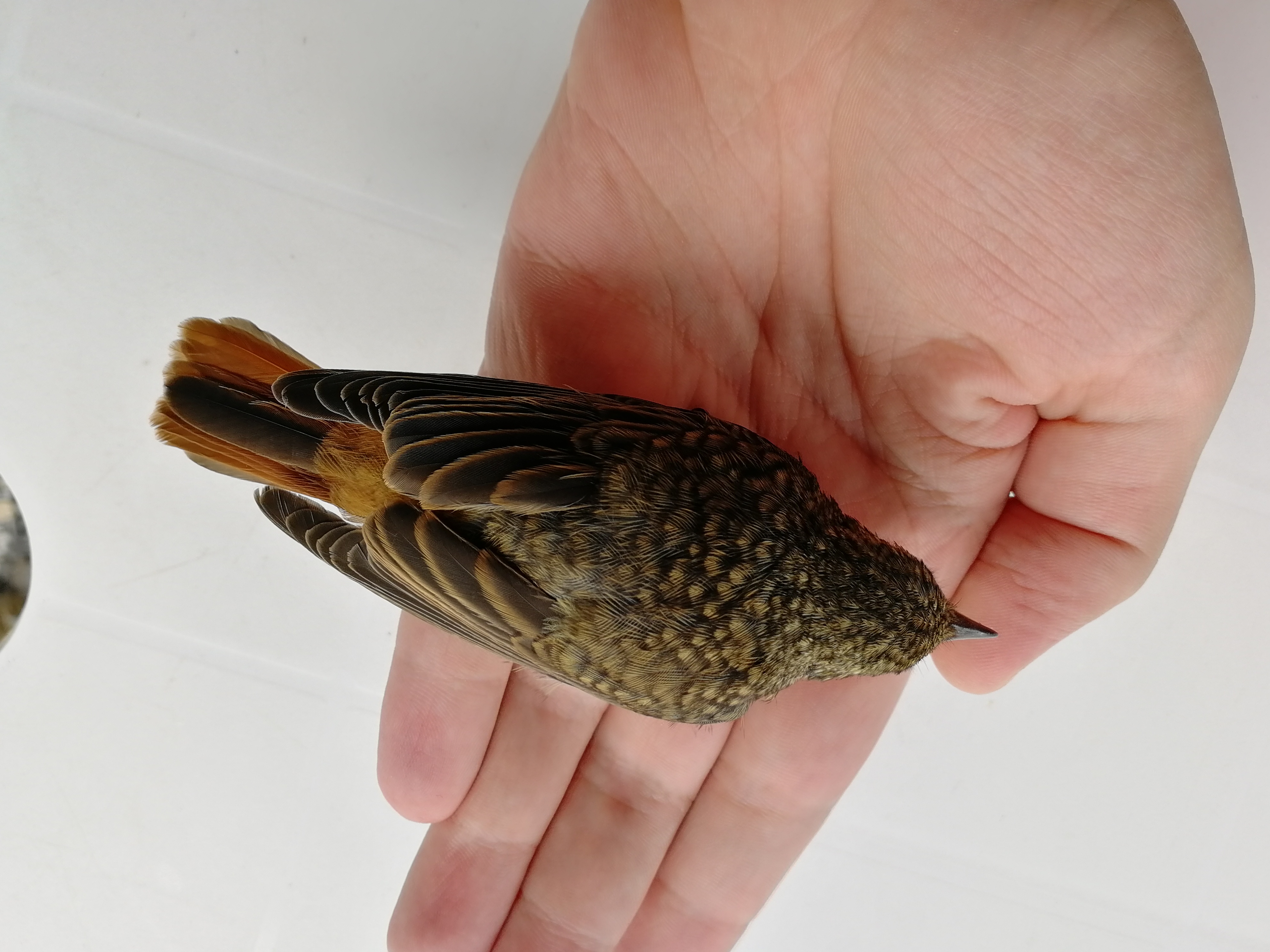 The black redstart came to her senses in 15 minutes, during which she became an unwitting participant in the photo session.