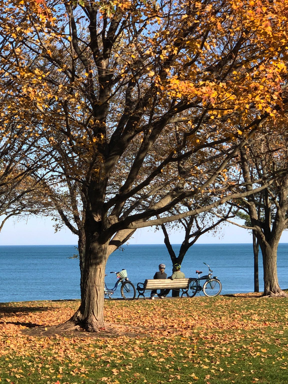 It was a beautiful day to ride!ucc (25)in #photo • 4 years ago (edited) It was a beautiful day to ride a bike on November in Illinois. I was riding along the Lakeshore drive, and I saw this couple sitting on a bench. This was taken with iPhone X. #stockphotos #photography #art #stock