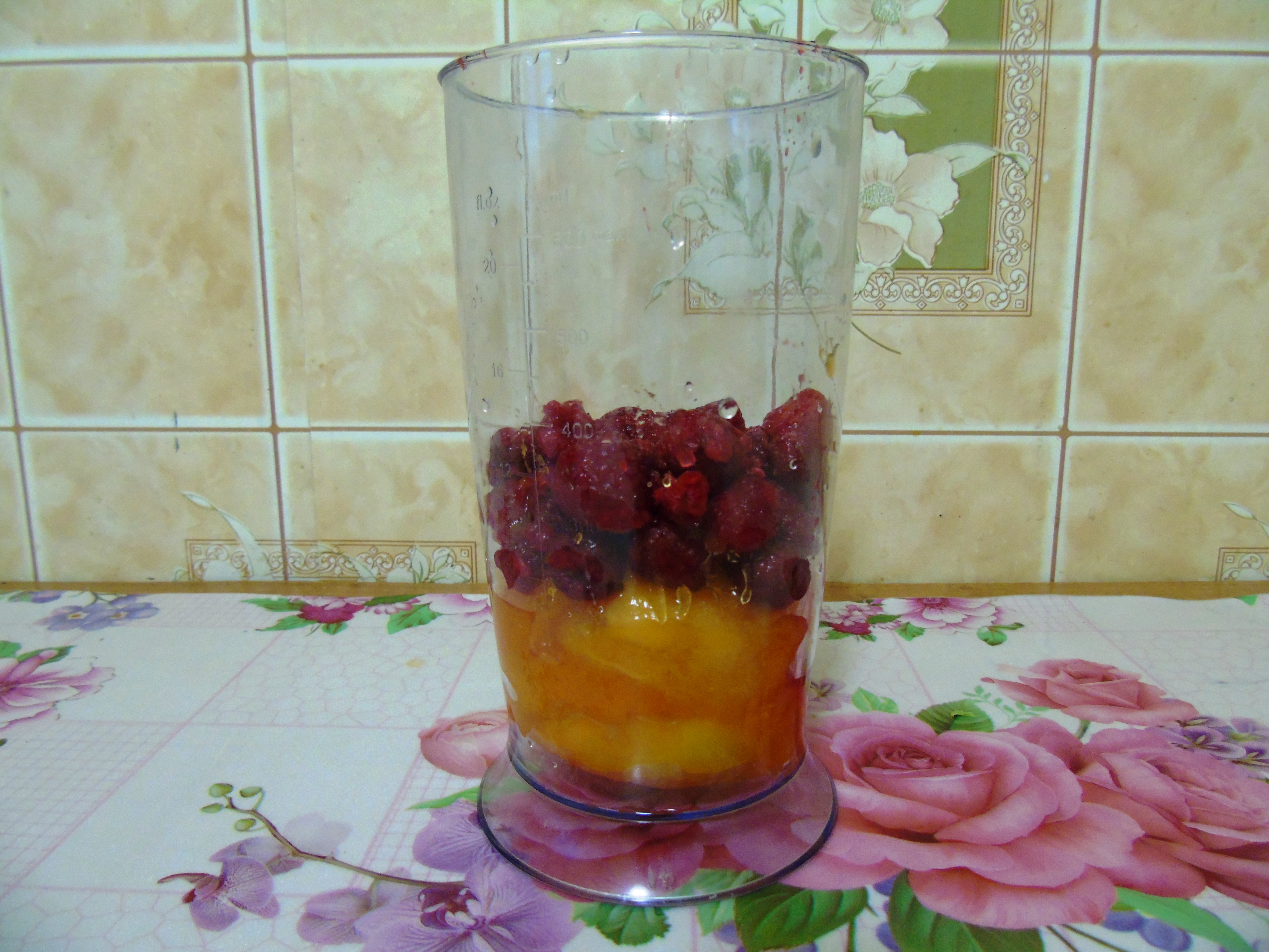Smoothies with apricot and raspberry.