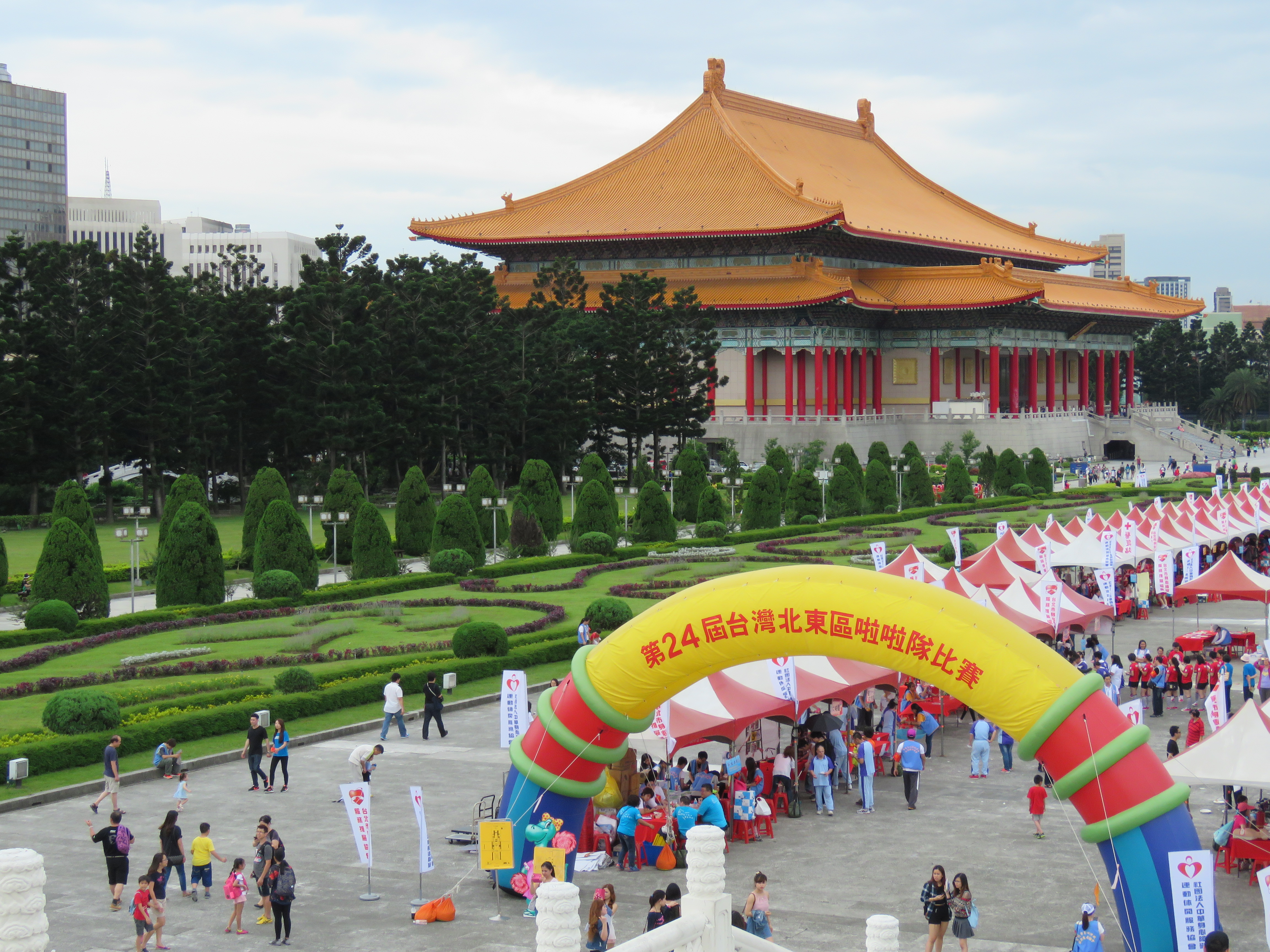 This is a mixture of the big temple building that is more ancient design looking. And then right outside there is the modern carnival on the street. The two don't seem to go together when you look at it from this angle. You can actually see how huge the temple is with the roof when comparing to the smaller sizes of the booths in the carnival. I think this is quite a funny combination of both sitting there together. Do you have the same sentiments as I do?