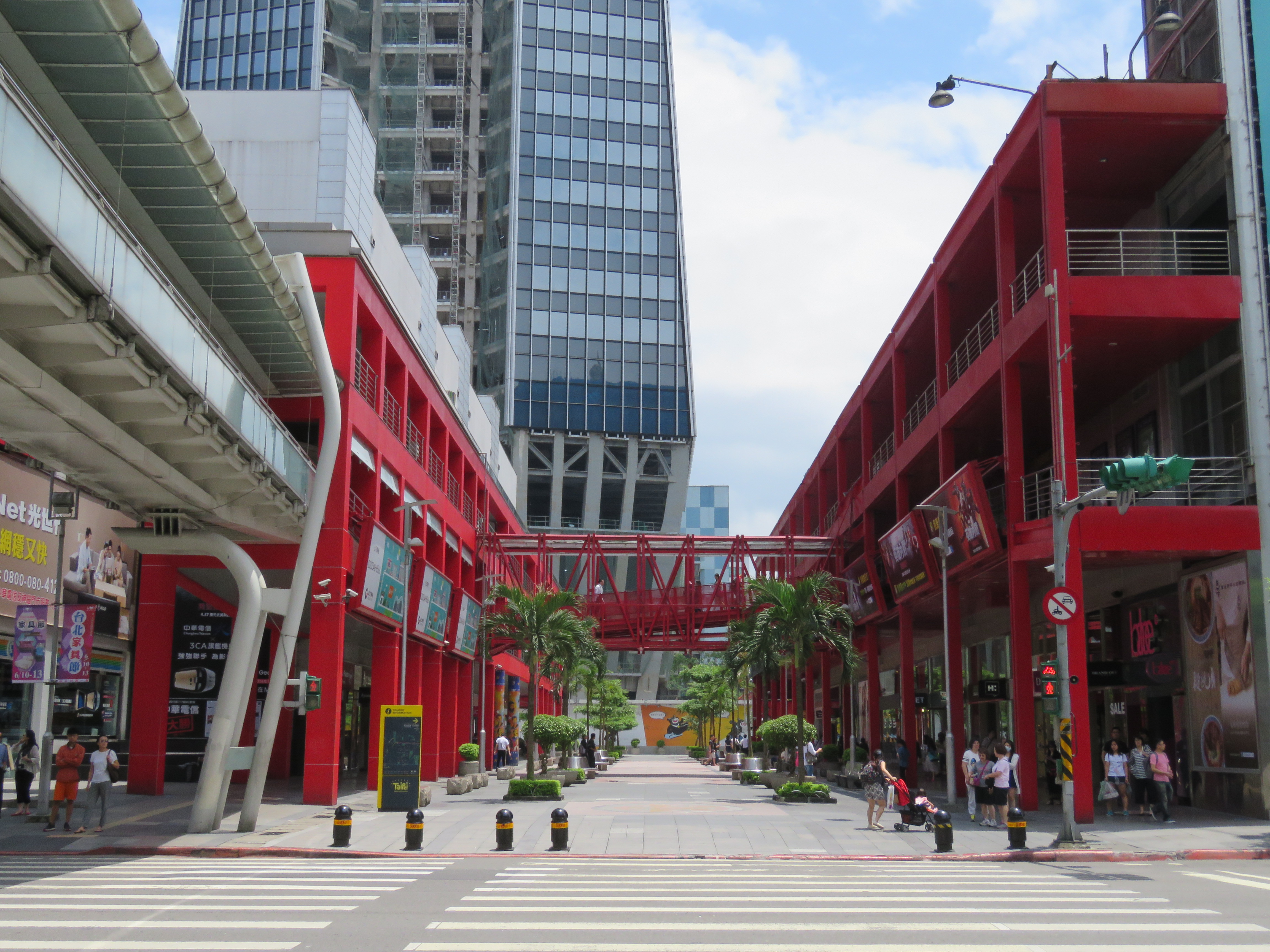 I think this building has a very special design in mirror image. Look at the red color. Do you wonder why one side is more bright than the other? It looks like that the left side just got newly painted while the other side has not been painted yet. The difference of color catches my attention.