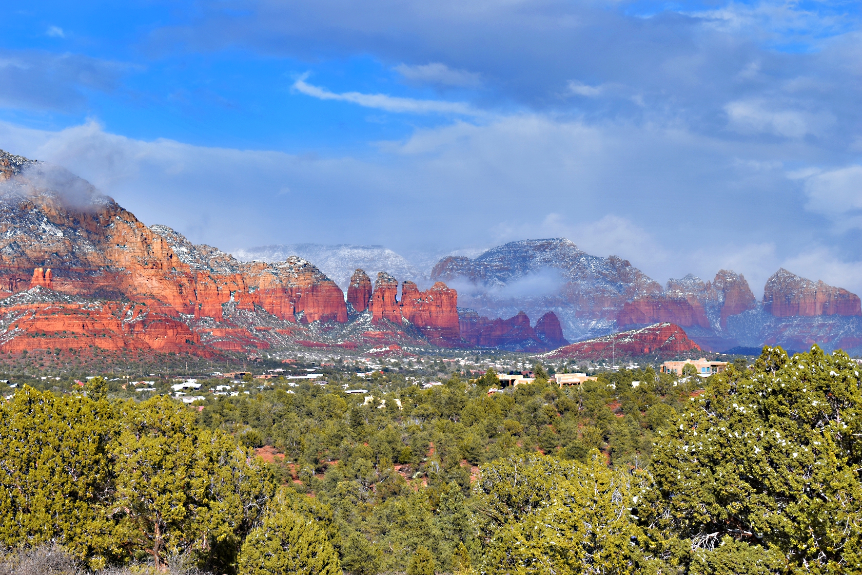 Another beautiful shot of Sedona in the snow! I love how you can see some mist or small low clouds floating through, adds a lot of character to it! Wow.. What an amazing place. Excellent composition and a lot of different colors to balance it out. Great capture!