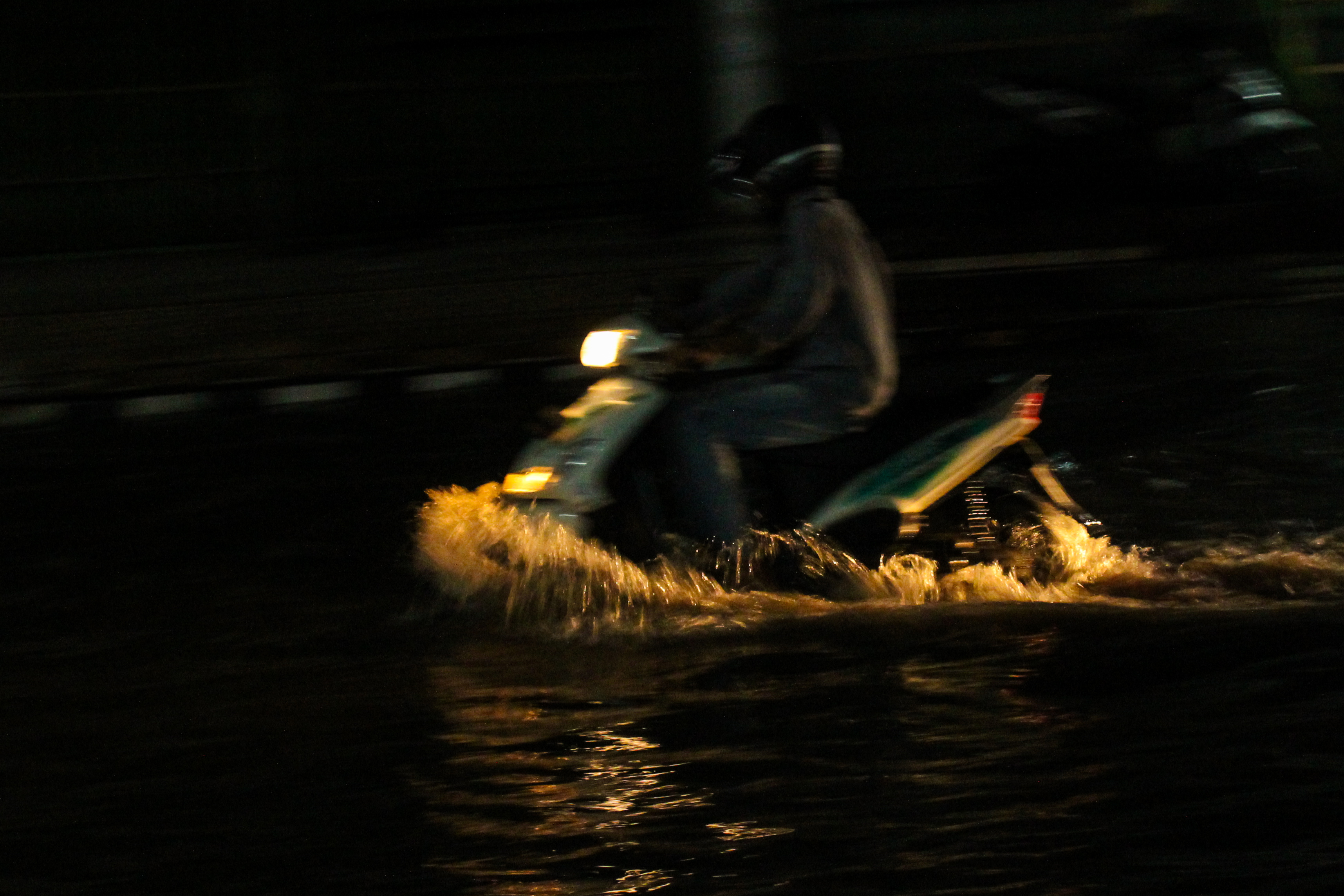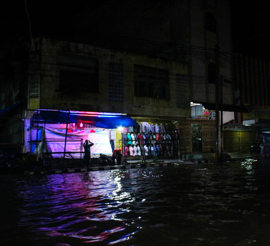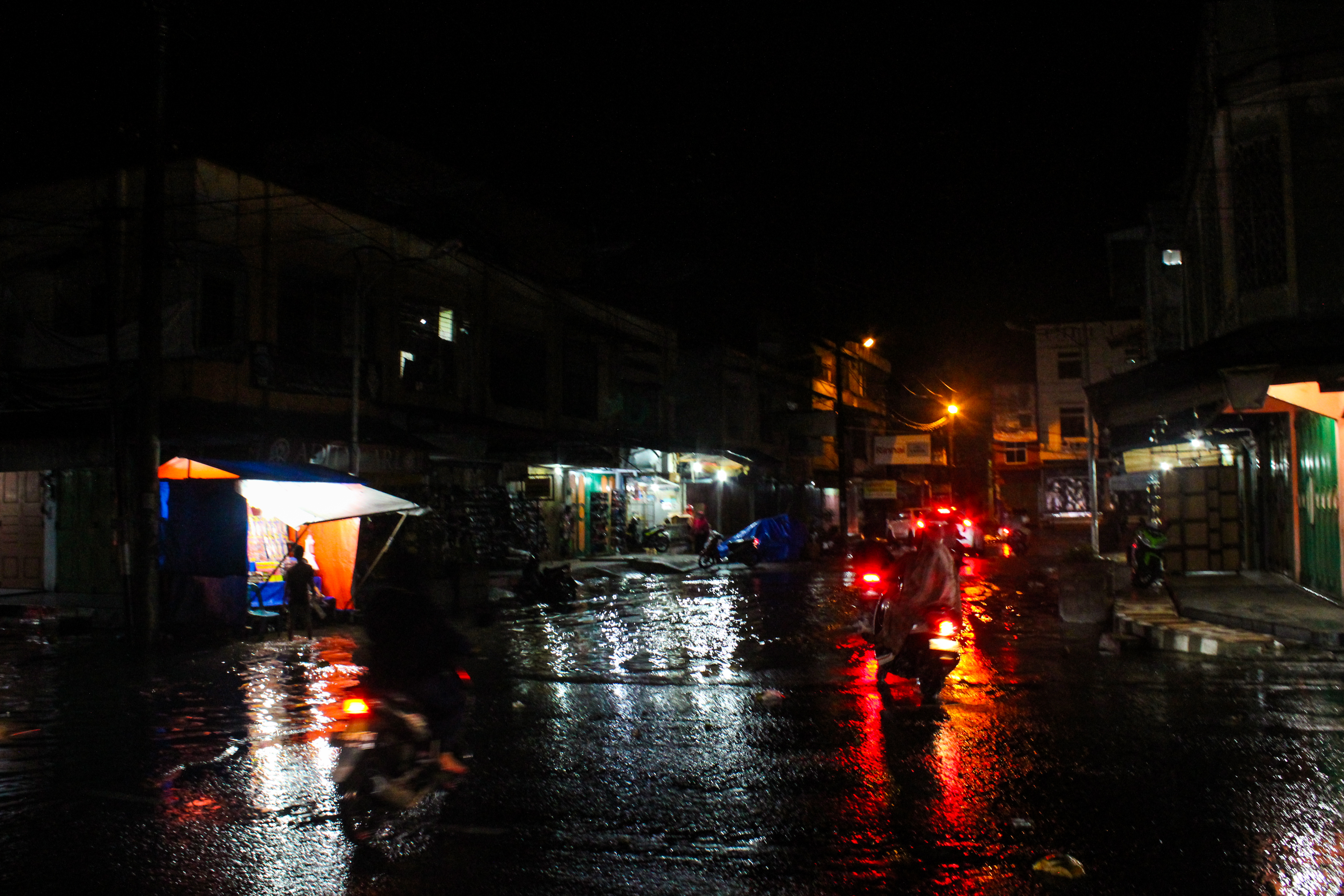 Kami tak sengaja melewatinya. Saya lalai dan menghayal di jalan. Banyak orang terjatuh karena sepeda motornya mati, air masuk kedalam knalpot. Entah mengapa bisa begini? Padahal, hujan terbilang sebentar, dan air sudah penuh di jalan. Padahal, waduk dekat dengan lokasi ini--di depan toko-toko baju, pusat kota Lhokseumawe.