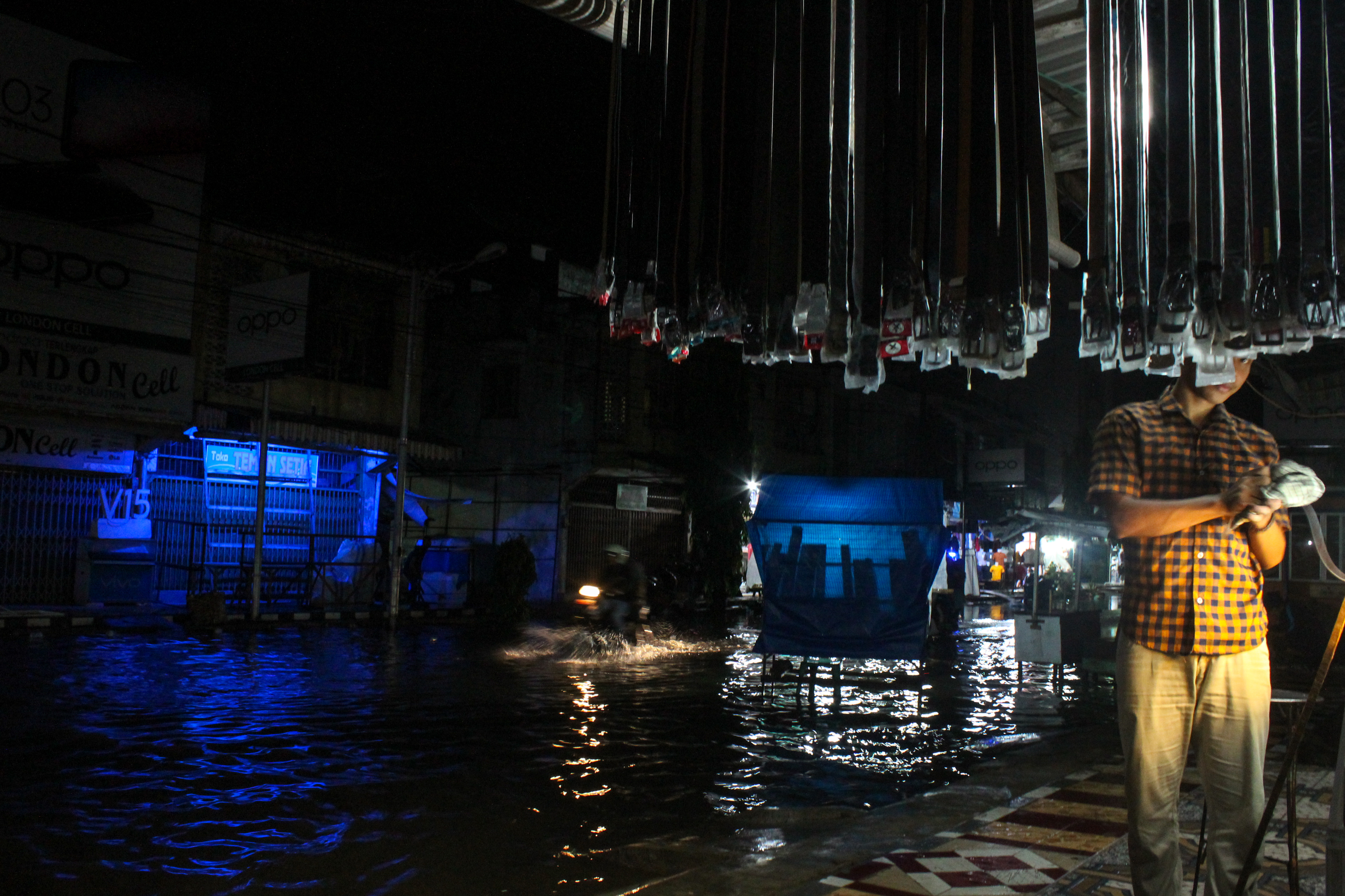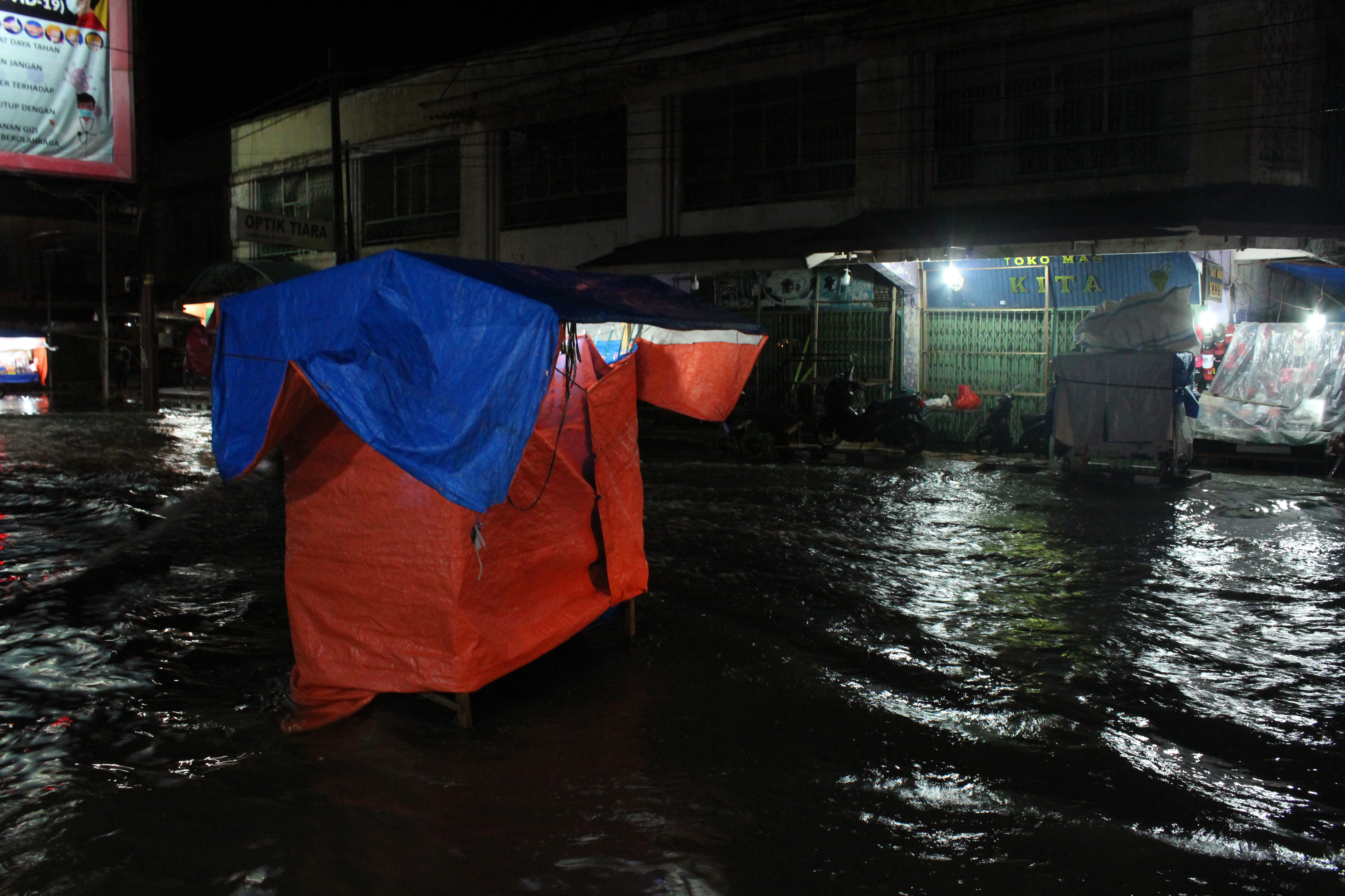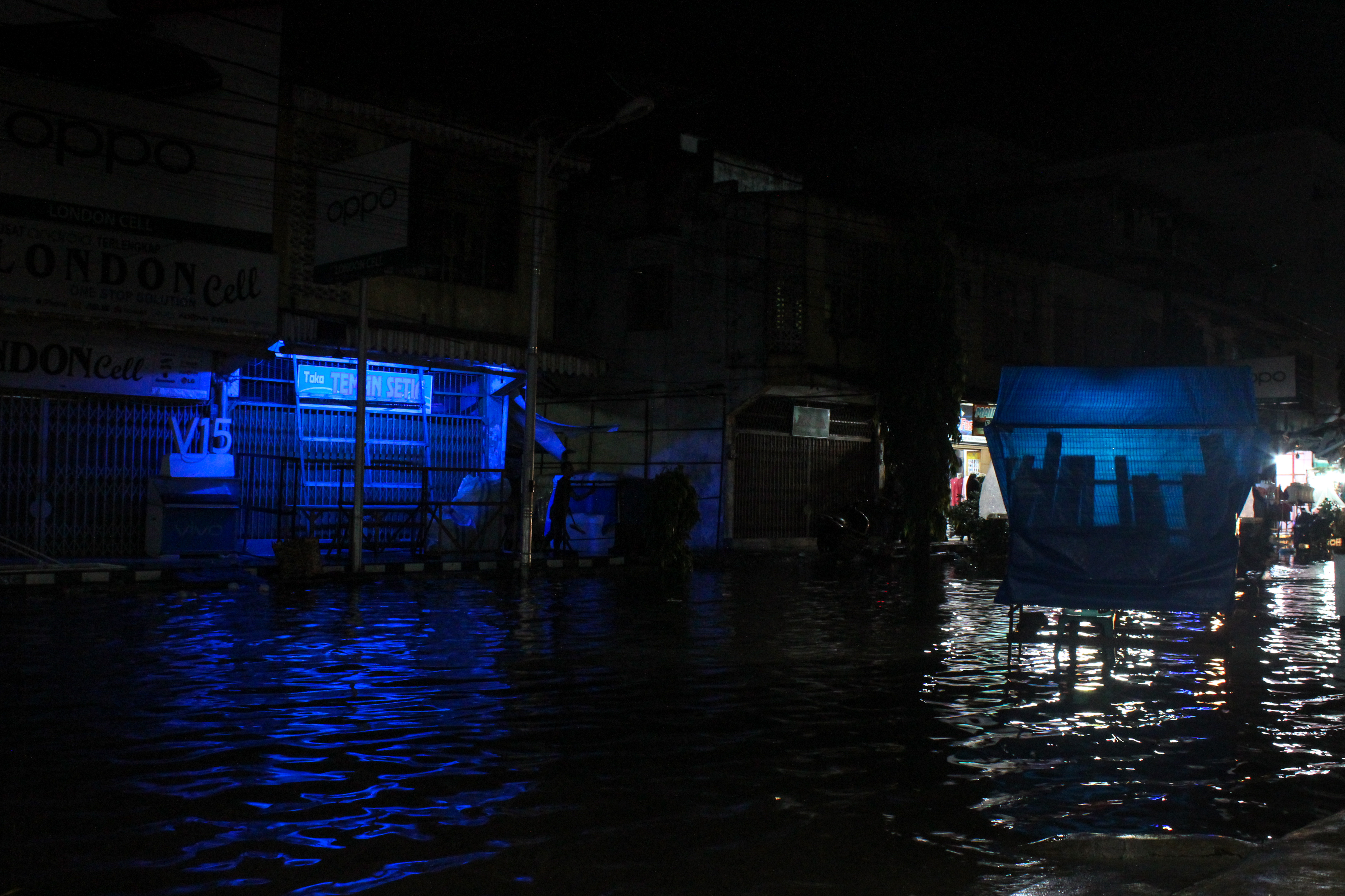 Kami tak sengaja melewatinya. Saya lalai dan menghayal di jalan. Banyak orang terjatuh karena sepeda motornya mati, air masuk kedalam knalpot. Entah mengapa bisa begini? Padahal, hujan terbilang sebentar, dan air sudah penuh di jalan. Padahal, waduk dekat dengan lokasi ini--di depan toko-toko baju, pusat kota Lhokseumawe.
