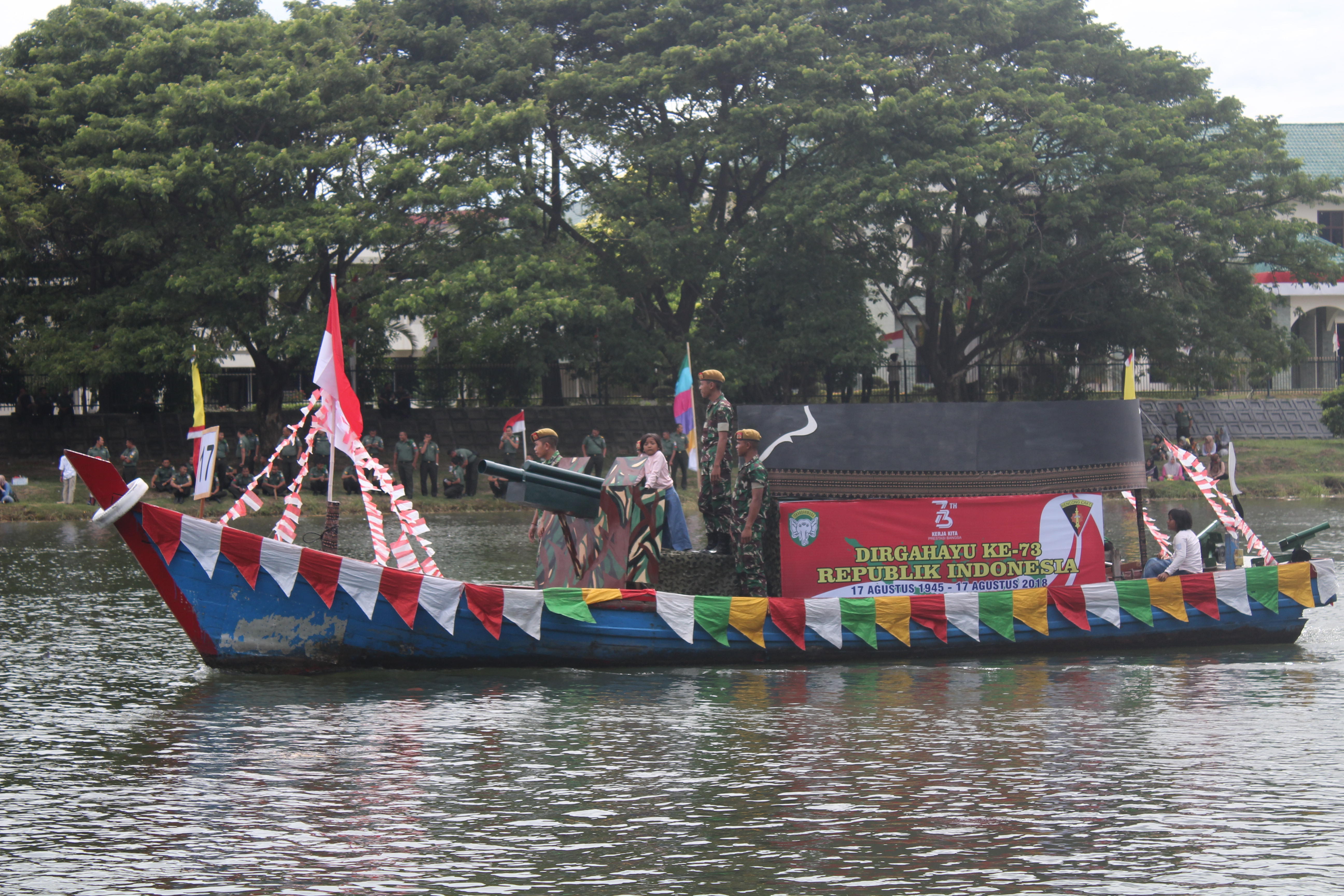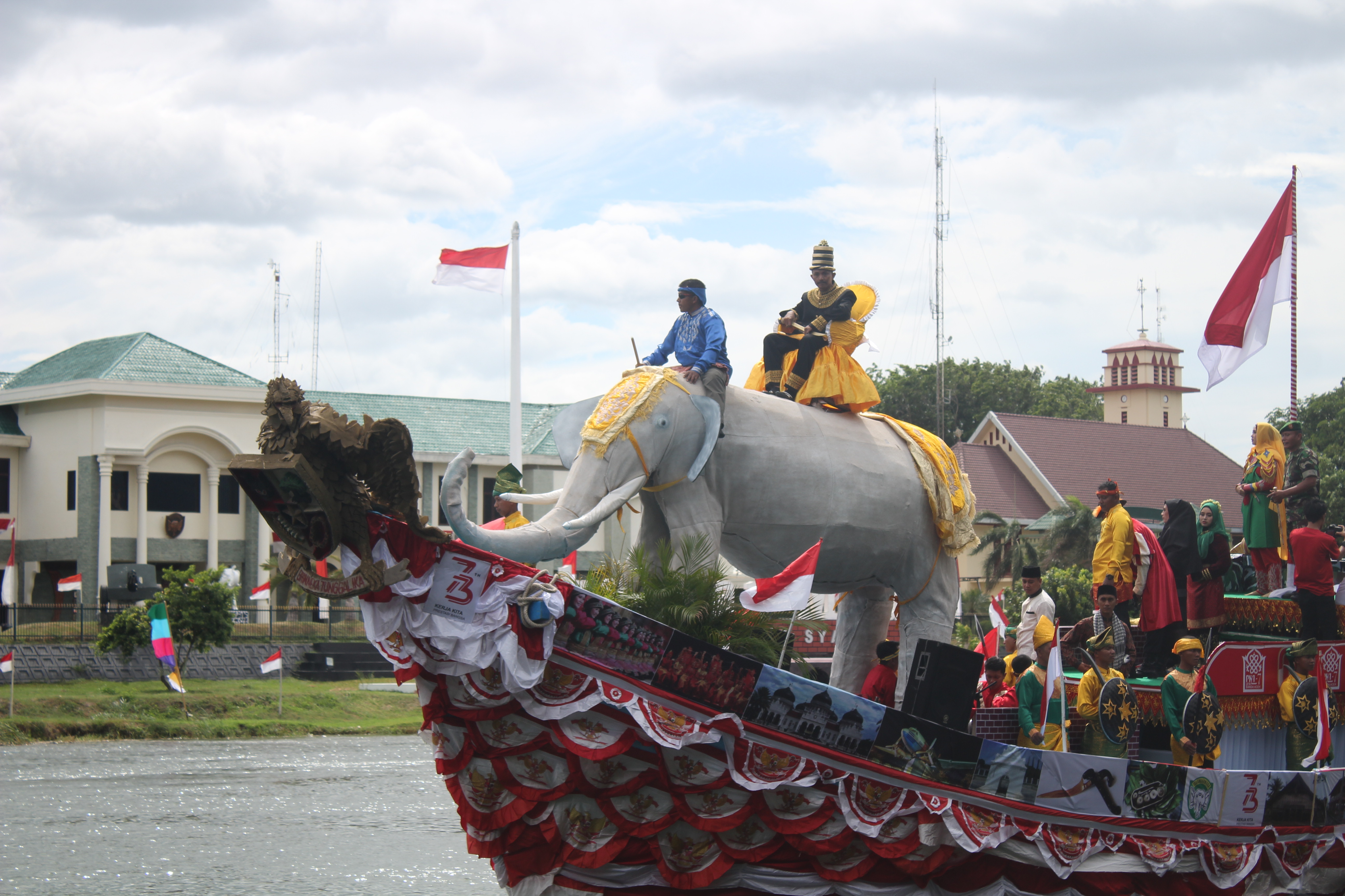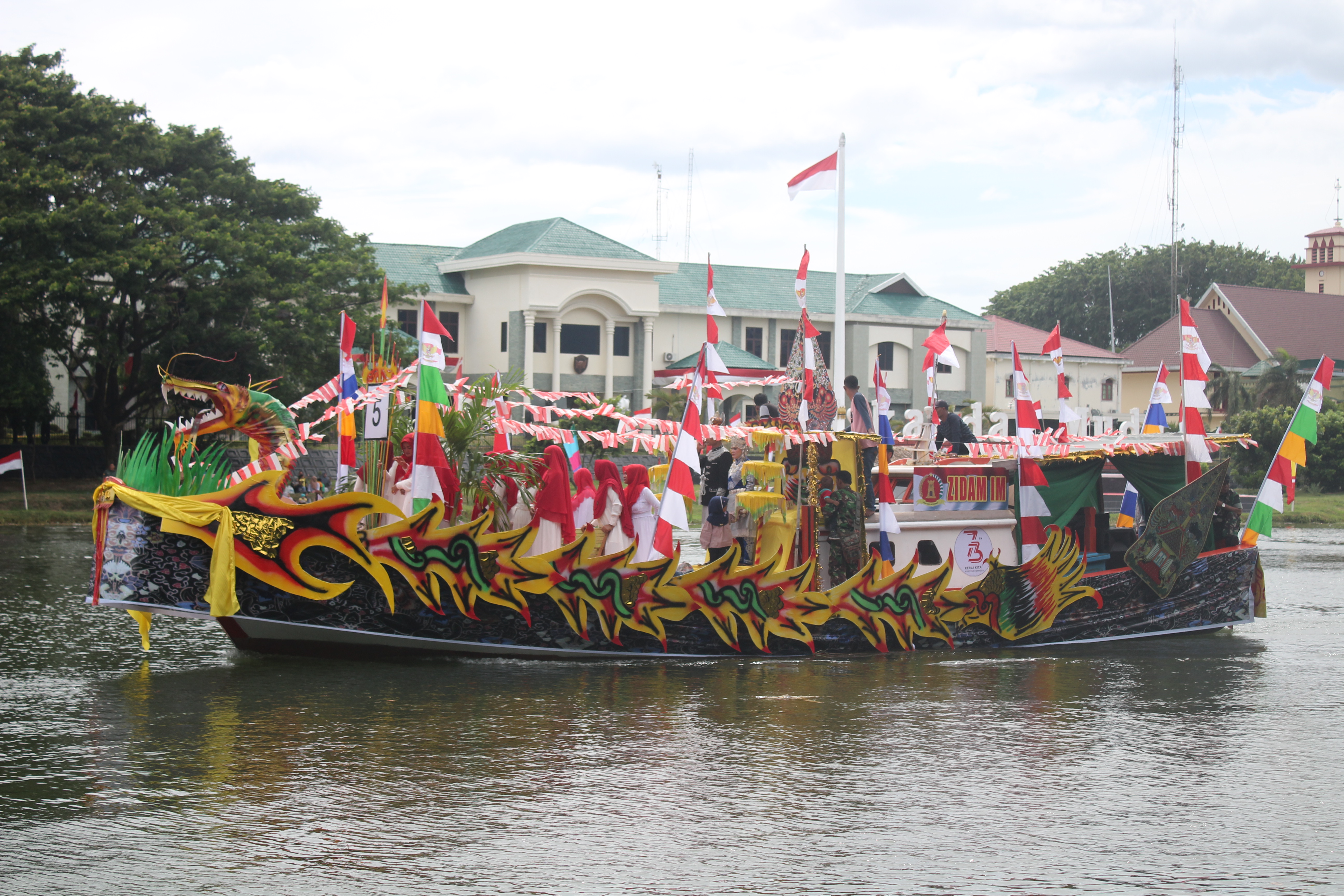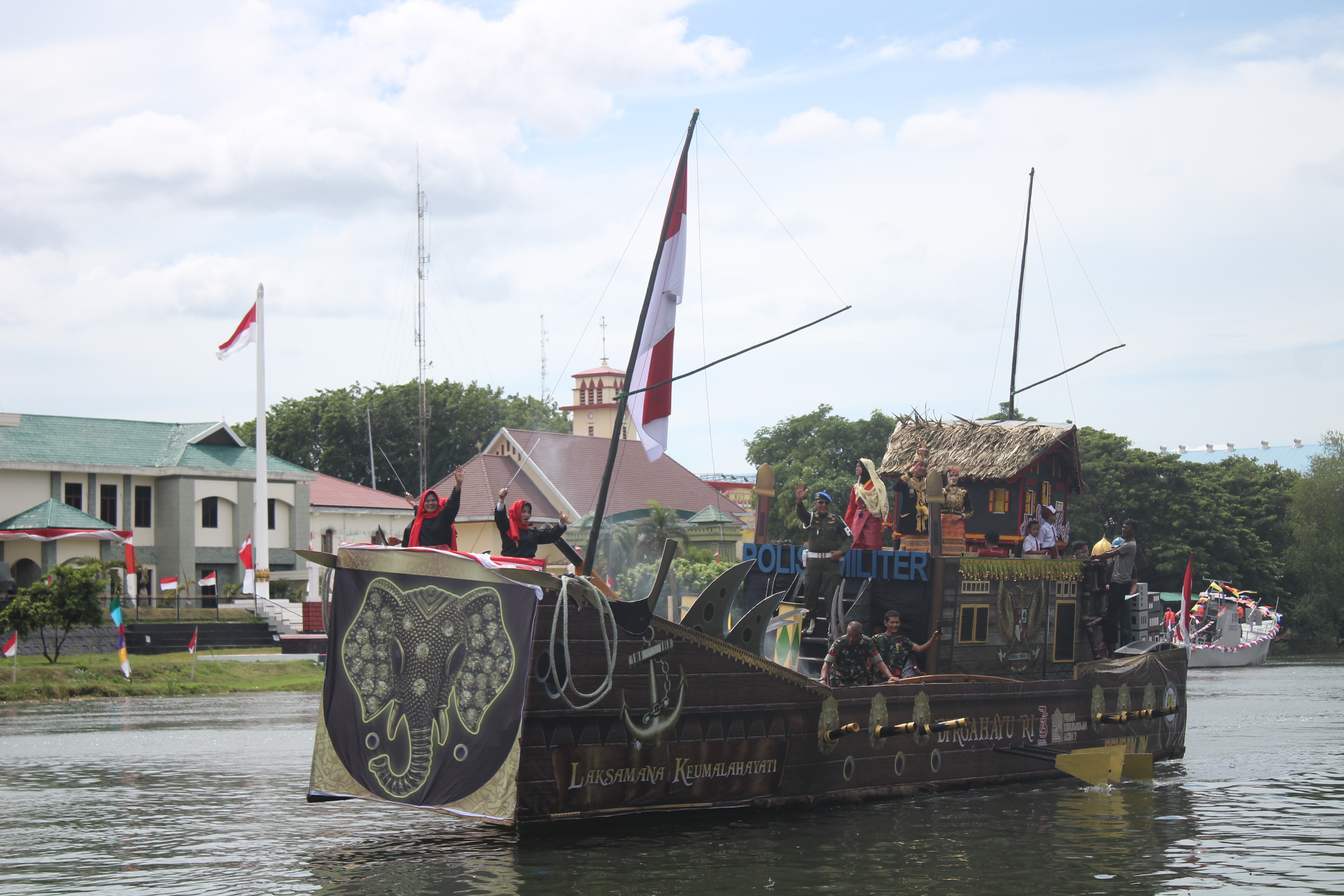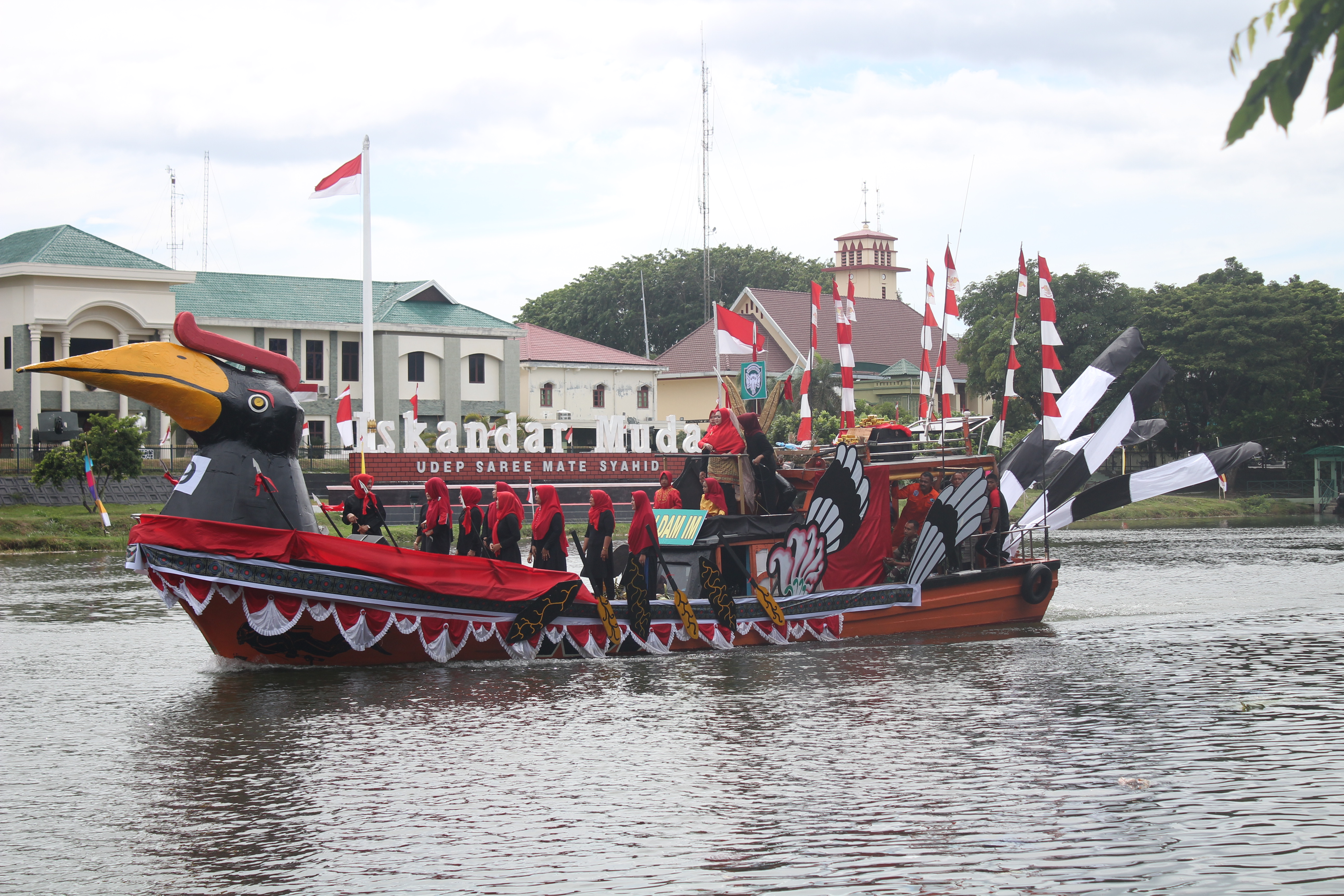 Tum..sekali lagi. Aku kaget, langsung mandi dan bergegas mencari asal suara. Tiba di depan Barata, tak satu pun kudapati keramaian atau orang-orang sedang menbudidayakan meriam. Pelan-pelan aku menaiki jembatan yang di bawahnya dialiri Daerah Aliran Sungai (DAS) Kreung Aceh. Kulihat kiri kosong, dan saat kulihat kanan; bendera-bendera berkibaran, orang-orang ramai, suara perempuan dari pengeras suara: "inilah perahu hias dengan no peserta...".