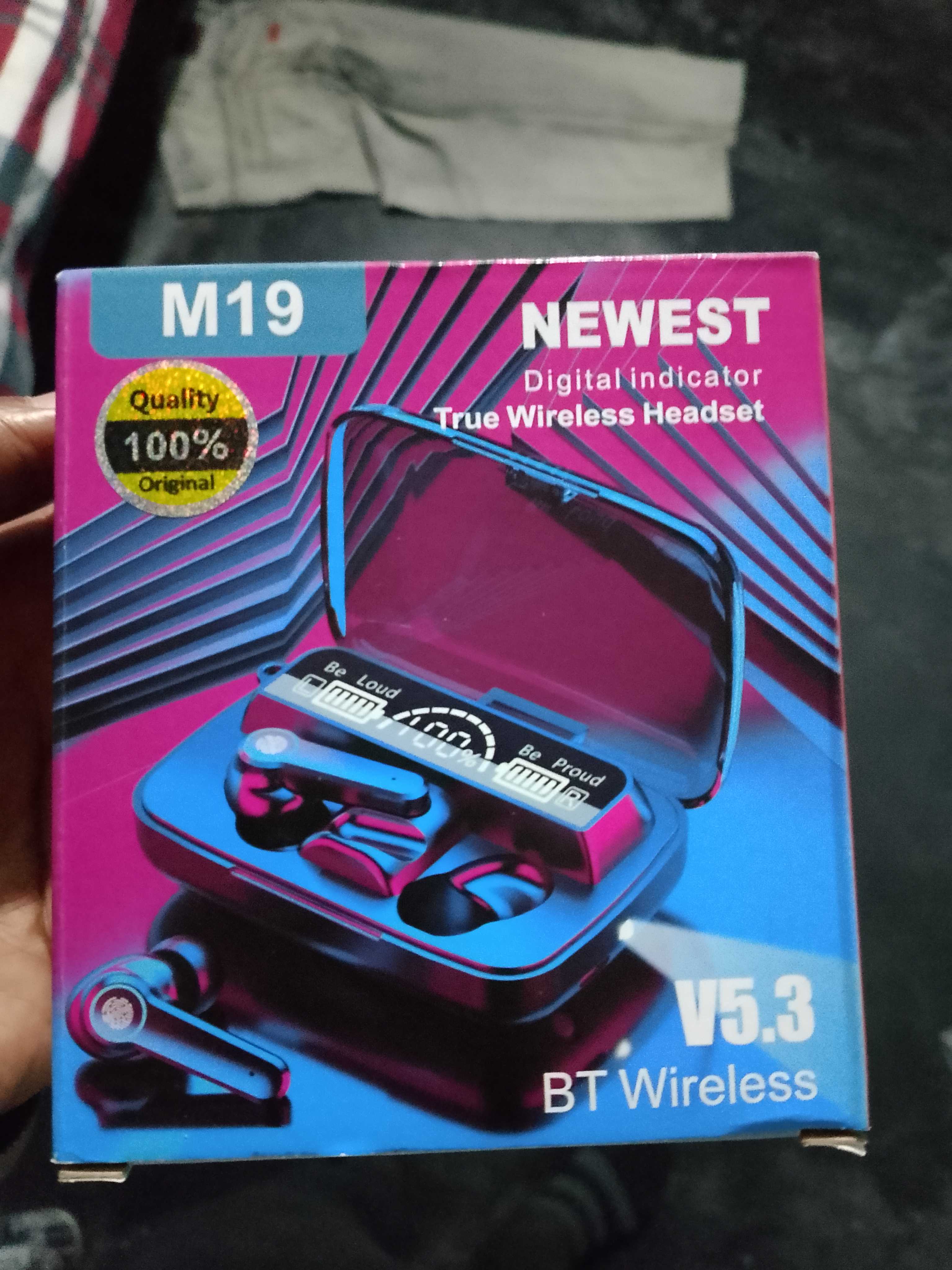 The market is 8 kilometers away from our house. I went there to buy a Bluetooth headphone. The shopkeeper told me that he didn't have many headphones left. He said he would bring more in the future. He had only two left, and one of them was black and the best. I bought the black one. It's model number M19. I brought it home and took a picture to share with you.