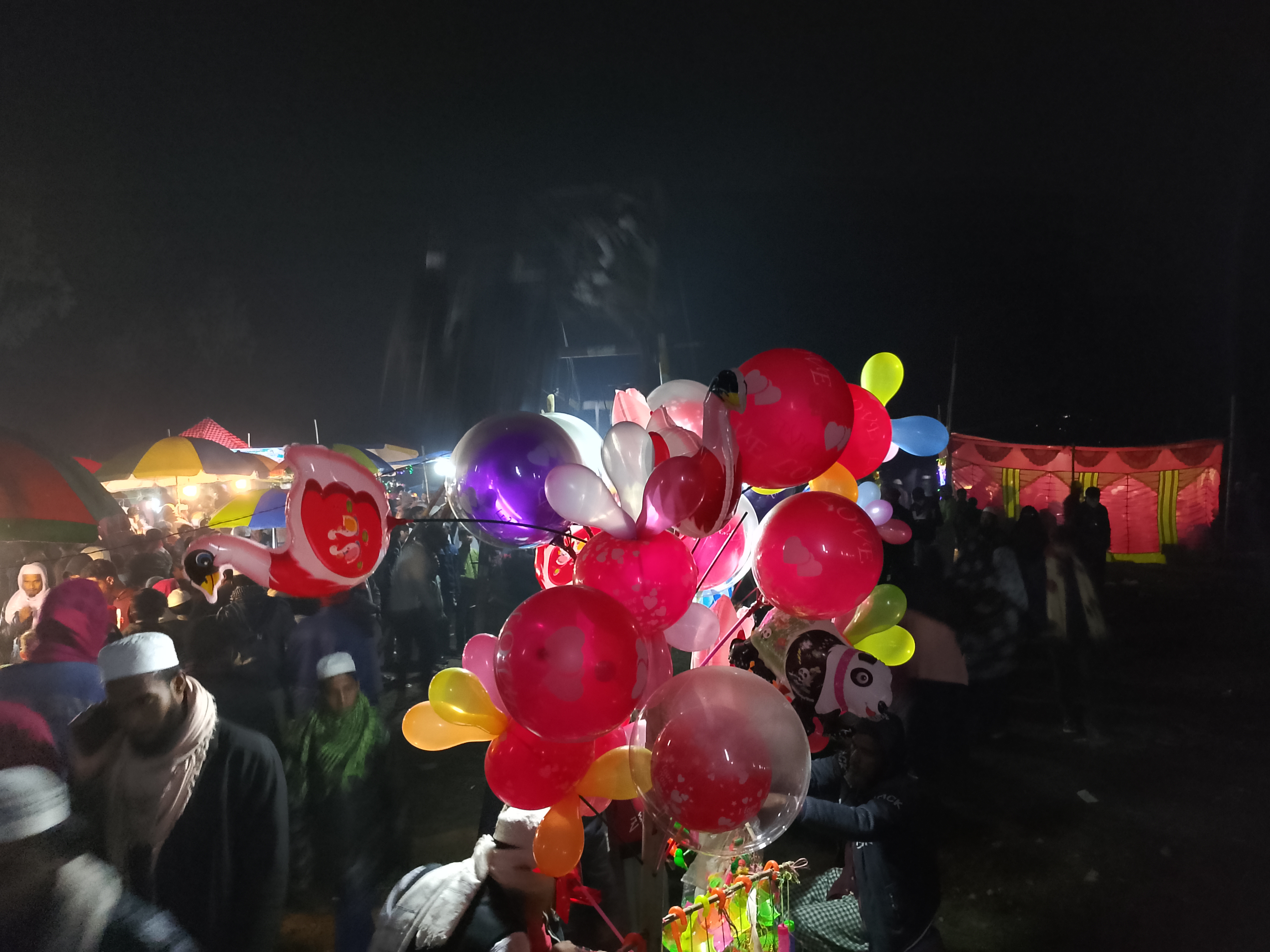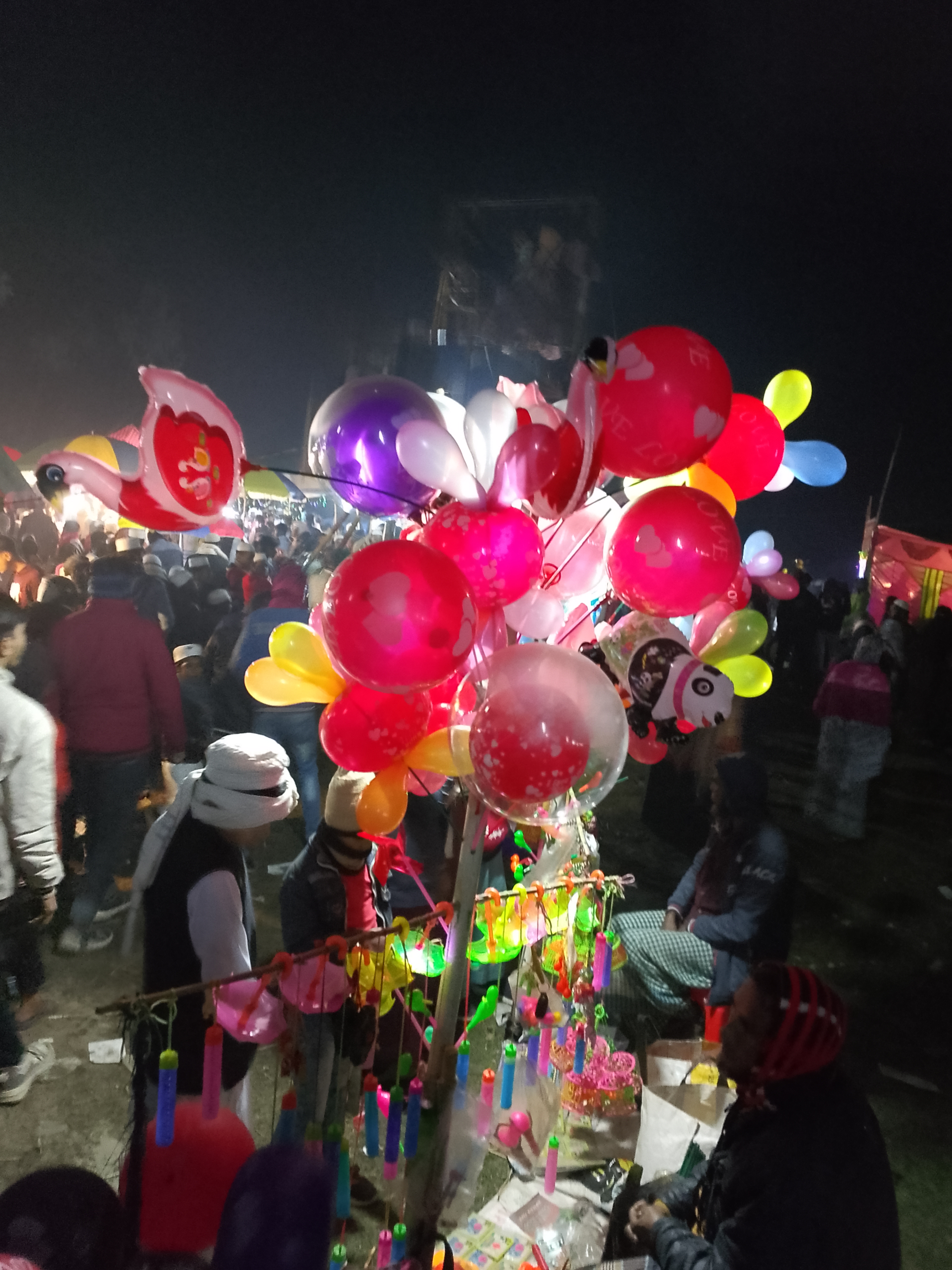 Here, a balloon shop has set up in the air, offering various types of balloons, both small and large. The balloons continue to float in the air, and when released into the sky, they fly quite far. Young children enjoy letting them fly, and they find great joy in doing so. I saw that small children were taking the balloons. It is very pleasant to see the joy on their faces when they get something they like, and it makes us happy too. I stood there, enjoying the sight of the children’s happiness with the balloons. After a while, when the balloons lose air, they no longer fly.