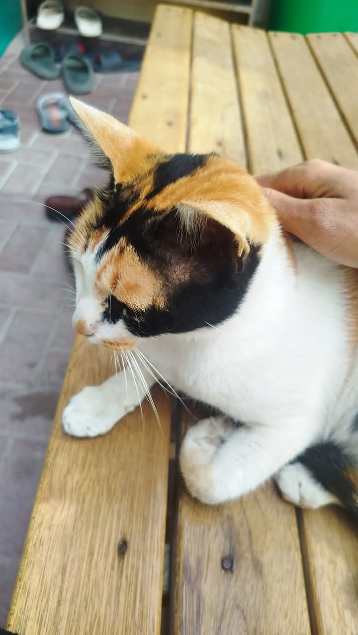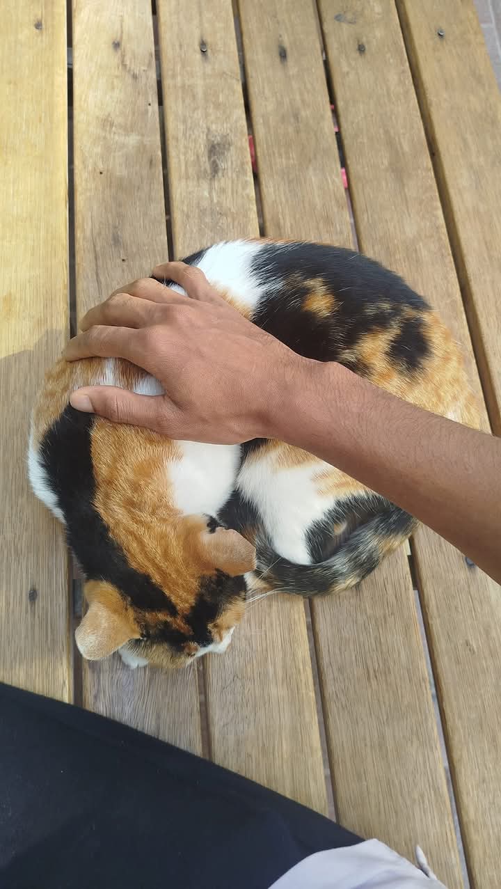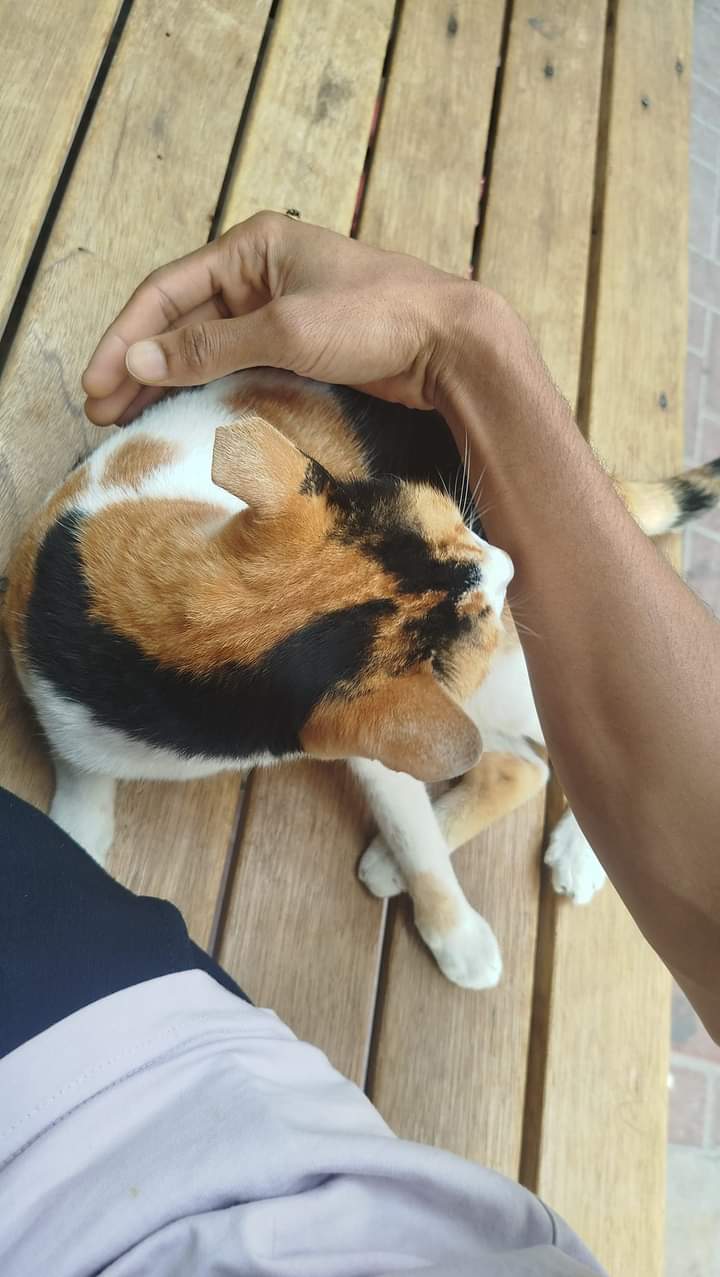 The cat is upset, so it has its head down. I am asking it why it is feeling sad, but it doesn't answer and keeps its head down. The cat is a very popular animal among humans, and people take great care in training them and often take them along. The animal is very charming, and there was some playful teasing with it. Many people call this cat by different names with love. Keeping a cat has become a hobby for many, and some even run cat farms. I took some pictures and shared them with you.