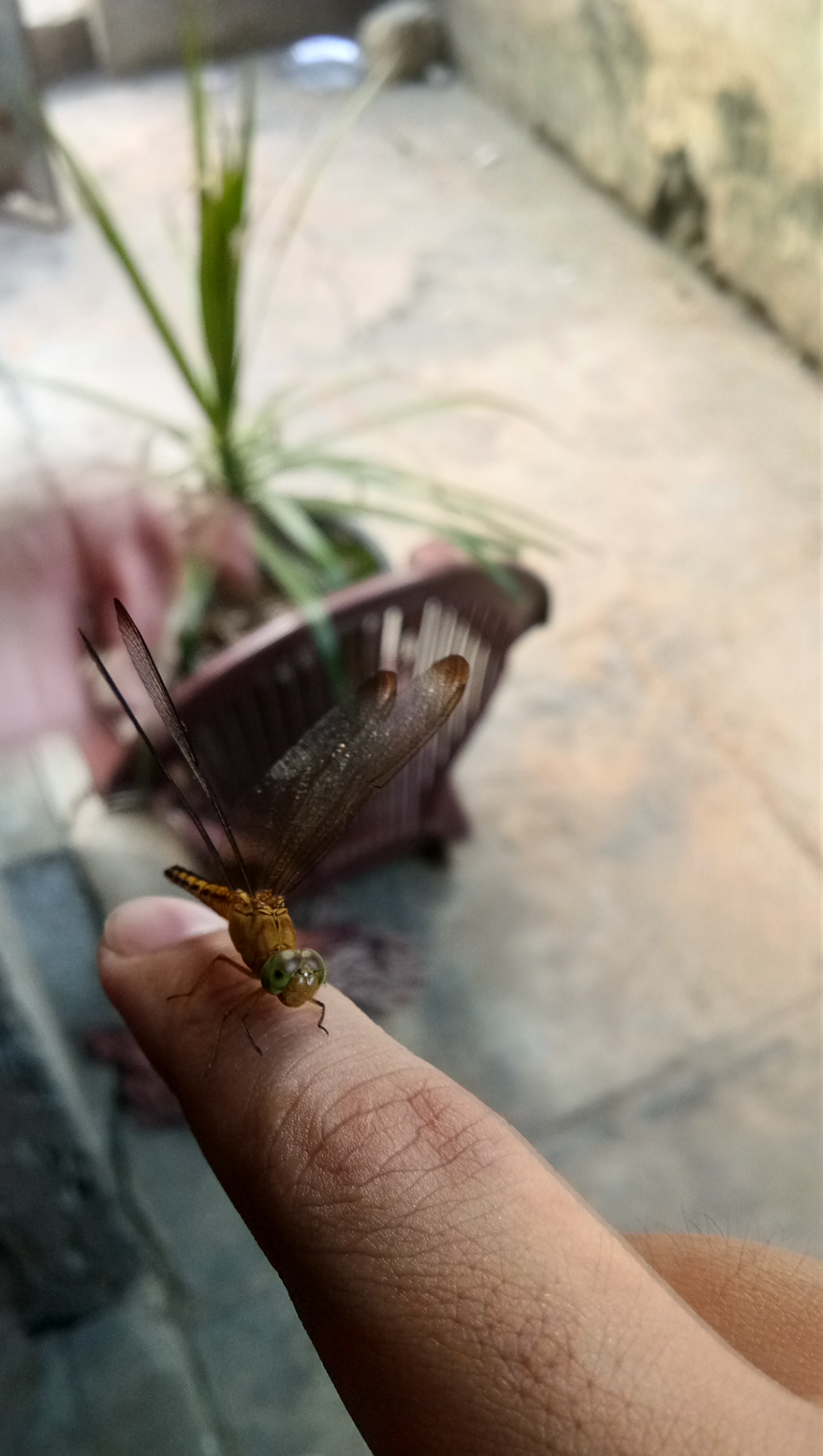 While sitting outside, I saw this litte baby Anispotera( Dragongfly) It was very small and it cant fly.