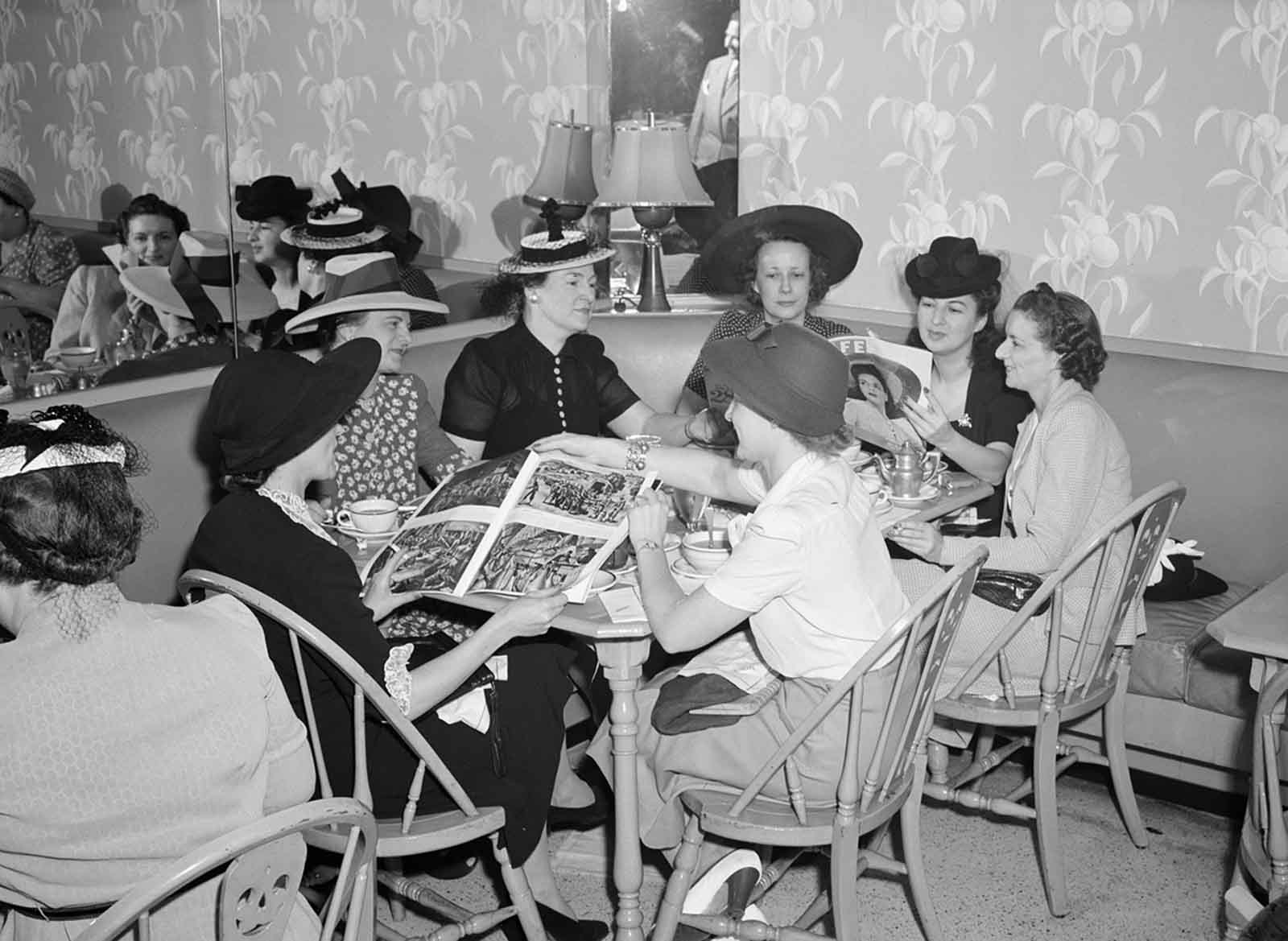 Detroit, Michigan. Shoppers at lunch at the Crowley-Milner department store in July of 1941.