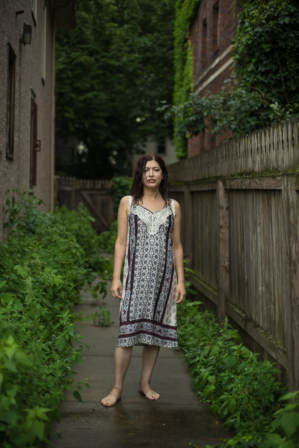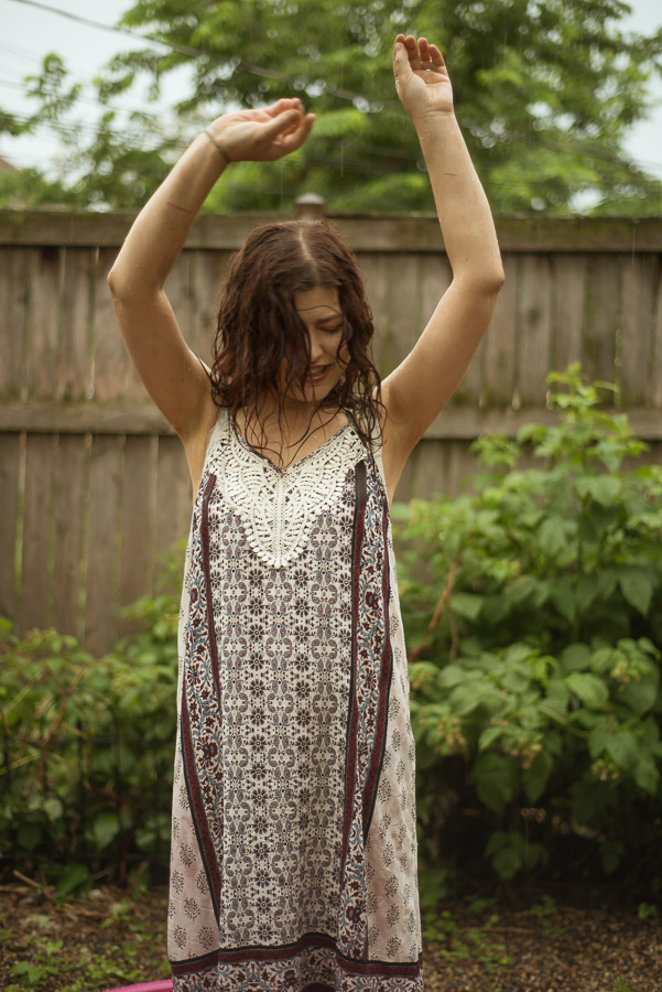 One of my co-workers at the bar job who was loved by everyone, recently had liver failure. This was a shock to all of us because she was only in her mid 30's. This girl, had to then leave to her home town to rest, recover, and wait for a transplant. This girl is the girl that you will never see wearing a dress or makeup. On her last day here, I thought to myself ," I would love to photograph her in a dress with her makeup and hair done. I called her up and because this was so spur of the moment and random, I thought she would say no. She surprisingly agreed to do it. She not only agreed to it but she seemed genuinely excited about it. I didn't have time to get a makeup artist or hair dresser but I did it myself the best I could. I tossed a dress from my boutique on her. I choose a baggy boho style one so that she felt comfortable and feminine at the same time. I didn't want to portray someone else but make her style more feminine. The shoot was super unplanned and we started finding places around our neighborhood to photograph at. About 10 minutes into the shoot, it started to pour rain. We didn't stop the shoot at all. She started dancing and playing in the rain and it was so heartwarming to see. I got to see the moment of her letting go of being a little uncomfortable and just enjoy life and posing for me in the rain. I was so happy with the shoot and how it just fell into place just because I had a thought that second. Also, I found out later that the day of the random photoshoot was her birthday. I had no idea that it was her birthday and that made me really happy.